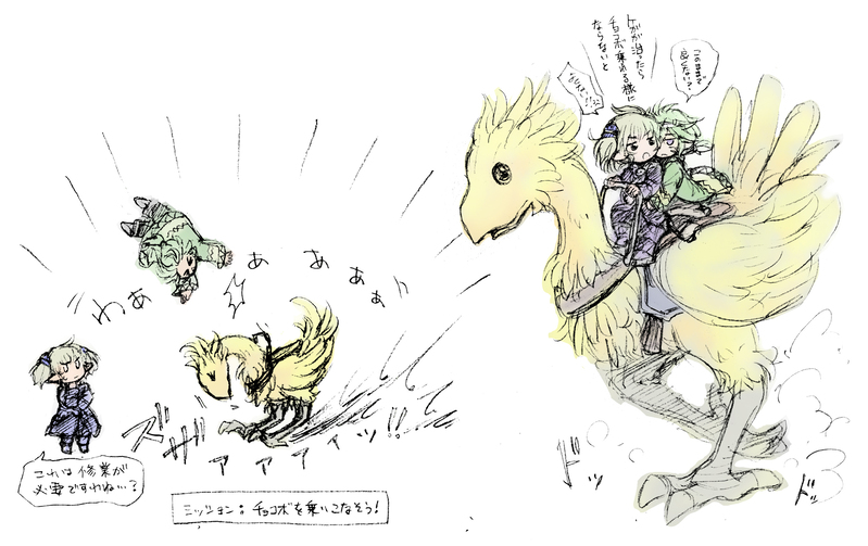 という見解で、黒き未來の方はトットさまからの地獄の特訓によりバッチリチョコボ乗れるようになった。という妄想を描いたものでした。