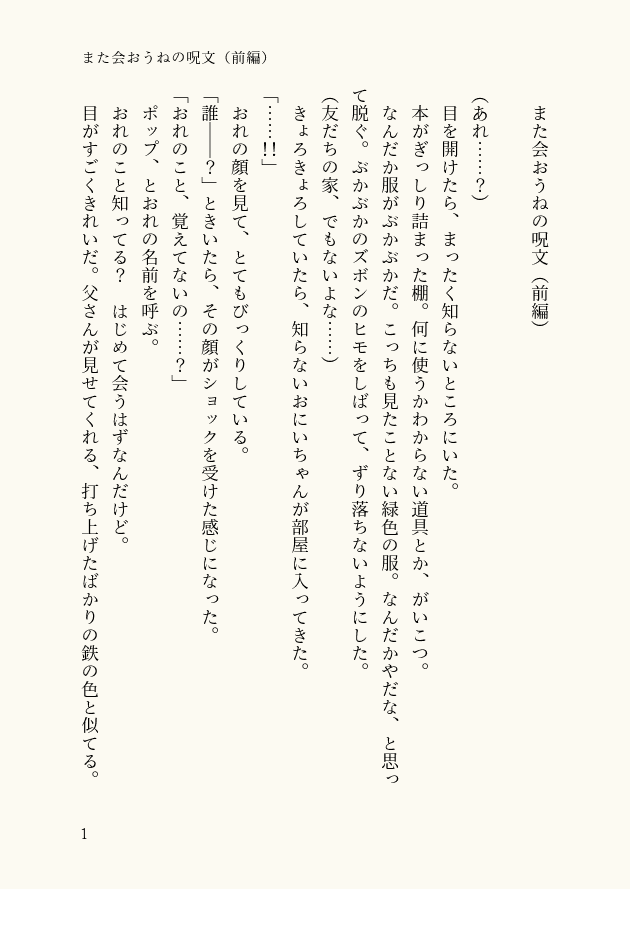 【タイトル】また会おうねの呪文(前編)
