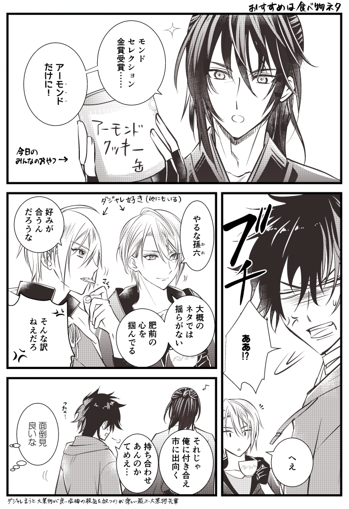 tqis9☆quiet followPASTWEBオンリー『 #腹が減っては歴史は守れぬ 』参加にあたって、食べる関連の孫六再掲。クッキー缶のが孫初描き。往々にして肥前が相方先生のイラストにお目にかかれる度に、意外に髪長いとこあるなとびっくりして取り入れて伸びました。 #腹が減っては歴史は守れぬ #孫六兼元(刀剣乱舞) #肥前忠広(刀剣乱舞) show all(+8 images) Tap to full screen (size:686x1000).Repost is prohibited Let's send reactions! freqpopularsnackothersPayment processing Replies from the creator Follow creator you care about!☆quiet follow tqis9PASTWEBオンリー『 #腹が減っては歴史は守れぬ 』参加にあたって、食べる関連の孫六再掲。クッキー缶のが孫初描き。往々にして肥前が相方先生のイラストにお目にかかれる度に、意外に髪長いとこあるなとびっくりして取り入れて伸びました。 9 tqis9DOODLEある日の会話が元ですがくれぐれも断っておくと則パートが自分です 絶対まねしてはなりませんよ(しないよ) tqis9DOODLEpixivのお題がタンクトップらしく つい tqis9DOODLE某H前プロの包帯を扱うお写真を見て、肥前ファンなうちの孫六が追随しました(傍から見たら例によって悪ふざけ) tqis9DOODLE雲類で挟んでやりたい…(まだ雲次のきてないうちに ラクガキを すみません) tqis9DOODLE満員電車で肥前くんが胸筋に挟まってるすがたがみたかったと供述(いつもは見ながら描いてるんですが今回手癖ラクガキ) related works 機関獣DONE大井競馬場の呑み食い 686 riseDONE #腹が減っては歴史は守れぬご飯ものwebオンリー展示(則さに)局部とかないですがやることやってるので18↑?y/n 2 riseDONE #腹が減っては歴史は守れぬご飯ものwebオンリー展示(孫さに)すけべになる予定ですがすけべに至るまでは普通に公開しておきます。オンイベあと2時間だから! 2581 機関獣DONE浦和競馬孫六呑み食いするだけ。改装前の浦和競馬場なので、今は色々変わっています。パドック屋根とベンチ席はもうないです。 2551 tqis9PASTWEBオンリー『 #腹が減っては歴史は守れぬ 』参加にあたって、食べる関連の孫六再掲。クッキー缶のが孫初描き。往々にして肥前が相方先生のイラストにお目にかかれる度に、意外に髪長いとこあるなとびっくりして取り入れて伸びました。 9 recommended works みょんわDOODLEアモーレ衣装の清光!!#刀剣乱舞#ミュージカル刀剣乱舞#加州清光 みずきDOODLE※審神者居ます。肥前沼に浸ってた所に伽羅ちゃん軽装が大爆発。テンションだけで描いたよく分からん4コマ。 4 はのかMOURNINGミュージカル刀剣乱舞 幕末天狼傅 無事千秋楽……😭コロナ禍で大変だったと思うけどほんとうに無事に終わってよかった………お疲れ様でした!早く生の舞台で拝みたい!!!! meenmenmenDOODLE江水良かったなぁ ななくらDOODLE肥前 藤村ろくDOODLEこれは部隊の泊まり込み任務中で朝の身支度をしている三振・毎朝髭切の朝支度を手伝っているが、今回の任務にはいないのでちょっと手持無沙汰な膝丸・今回は一人で着てみるかと着はじめたはいいが、結局無理で膝丸に手助けしてもらう直前の和泉守兼定・朝餉が気になっている肥前忠広 ユウナDOODLE現代遠征肥前 4 梦皮酱DOODLE机顶盒desu,p2是脱掉浴巾的版本*有体毛,喜欢毛毛 2 萩屋さとDOODLE孫六さん鍛刀キャンペーン、ダメでした!とりあえず写経をupしておきます。