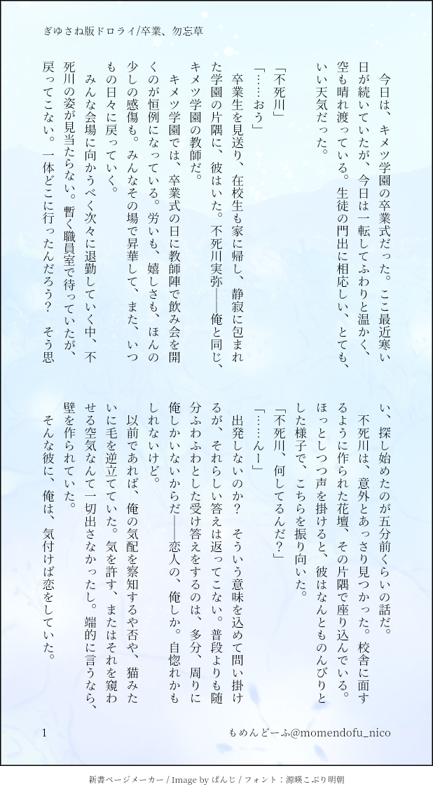もめんどーふ @momendofu_nico好きなことを描く/書くを目標にやっていきたい見てくださる、読んでくださる方全てに感謝を🙇 ☆quiet follow Yell with Emoji Tap the Emoji to send POIPOI 519