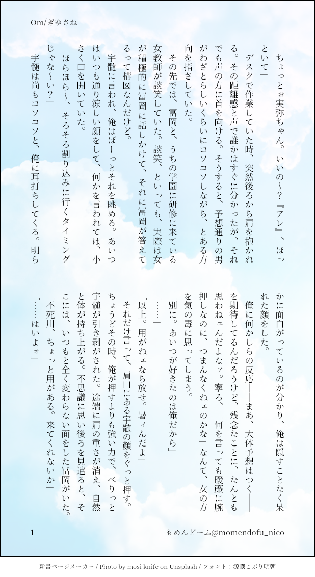 もめんどーふ @momendofu_nico好きなことを描く/書くを目標にやっていきたい見てくださる、読んでくださる方全てに感謝を🙇 ☆quiet follow Yell with Emoji Tap the Emoji to send POIPOI 524