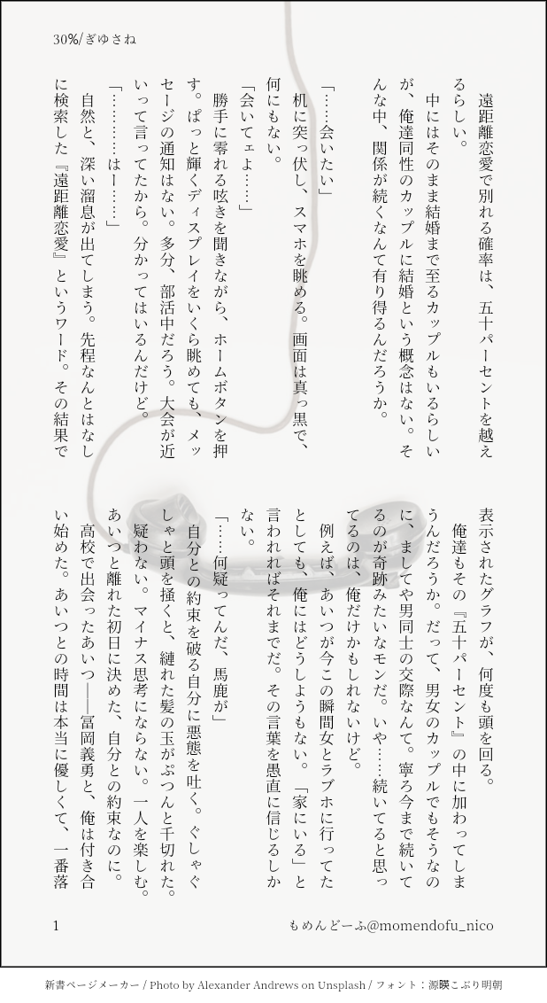 もめんどーふ☆quiet followDONEDDぎゆさねあいつがいないところでは素直なさねの話 #ぎゆさね teethingRing show all(+4 images) Tap to full screen (size:618x1132).Repost is prohibited Let's send reactions! freqpopularsnackothersPayment processing Replies from the creator Follow creator you care about!☆quiet follow もめんどーふDONEぎゆさね版ドロライ「焼き鳥、しっぽり」DDぎゆさね2人きりで2次会する2人の話 4 もめんどーふDONE余生ぎゆさね心願成就を果たしたぎゆの話 5 もめんどーふDONE現役ぎゆさねワンライ「狩人、狼」の幕間ぎゆが気を失ってる間の話※少しですが流血描写があります。苦手な方はご注意ください 4 もめんどーふDONEぎゆさね版ドロライ「狩人、狼」現役ぎゆさねさねの救助に向かうぎゆさんの話※ご都合血鬼術が出てきます、苦手な方はご注意ください 5 もめんどーふDONEフロセキュぎゆさねぎゆさね版ドロライ「雷雨、傘」と、その続きのさらに続きの話※注意※下記の要素を含みます、苦手な方はご注意下さい・さねが体を売ってお金を稼いでいます・台詞だけですが、モブと絡んでいる描写があります 13 もめんどーふDONEフロセキュぎゆさねぎゆさね版ドロライ「雷雨、傘」と、その続きを纏めたものです※注意※下記の要素を含みます、苦手な方はご注意下さい・さねが体を売ってお金を稼いでいます・台詞だけですが、モブと絡んでいる描写があります・書いている本人はハッピーエンドのつもりですが、人によってはそう思わないかもしれません 13 related works Kasumi KiriuDONE【ぎゆさね】🔞18歳未満閲覧禁止原画展グッズののトミセンジャージが上下セットではなく上しかなかった事に端を発したネタです。勝手にセンシティブジャージと銘打っております。もろに出てますので18歳未満は閲覧禁止です× 3 きゃれみMENU新刊サンプルr-18部分です18歳以上ですか?(yes/no) 4 i7_osk5DOODLEぎゆさねせっすす表情の練習 ymnkTRAINING練習ー koketamaDOODLEねこちゃん🐈⬛ Kasumi KiriuDONE【ぎゆさね】2022ハロパロネタです🔞してやったりな北風🍃ちゃんがまんまとぎゆカサコに返り討ちにあうお話。全4P。後半🍌出ますので18歳未満閲覧禁止です× 4 koketamaDOODLEねこちゃん🐱 Kasumi KiriuDONE【ぎゆさね】6月9日69の日ということで🍌描きたいとこだけ1ページ漫画です18歳未満閲覧禁止🈲 Kasumi KiriuDOODLE【ぎゆさね】※18歳(高卒)未満閲覧禁止遅くなりましたが💦💦ホワイトデーポストで頂いた素敵なお返しをお題にして描きました😊ありがとうございました❣フロセキュぎゆさね🌊🍃勤務中に制服を着たままいたす2人。シチュなど苦手な方はスルーをお願いします🙇しっかりinしてます🍌背後注意⚠