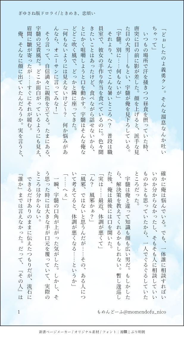 もめんどーふ @momendofu_nico好きなことを描く/書くを目標にやっていきたい見てくださる、読んでくださる方全てに感謝を🙇 ☆quiet follow Yell with Emoji Tap the Emoji to send POIPOI 519