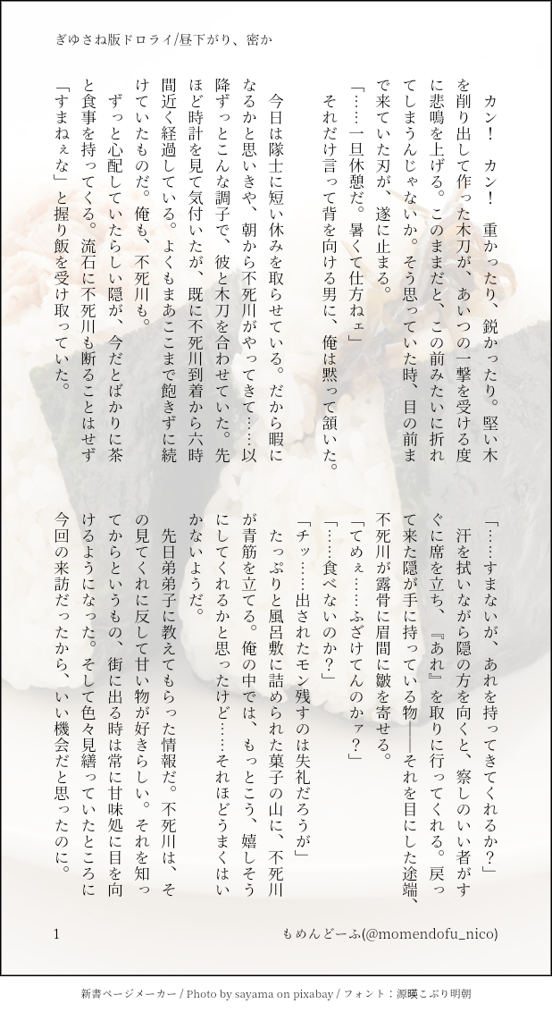 もめんどーふ☆quiet followDONEぎゆさね版ドロライ「昼下がり、密か」現役ぎゆさね手合わせの間のはなし #ぎゆさね teethingRing show all(+3 images) Tap to full screen (size:618x1132).Repost is prohibited Let's send reactions! freqpopularsnackothersPayment processing Replies from the creator Follow creator you care about!☆quiet follow もめんどーふDONEぎゆさね版ドロライ「体操、リズム」キメ学ぎゆさねある秋の日のひとこま 4 もめんどーふDONEぎゆさね版ドロライ「雷雨、傘」フロセキュぎゆさね雨宿りをする2人の話うっすらですが性行為描写あります、苦手な方はご注意ください 4 もめんどーふDONEキメ学ぎゆさね事後の話②(直球)割とどうしようもないくらいぎゆさんのことが好きなさね 4 もめんどーふDONEキメ学ぎゆさね事後の話(直球)ただたださねのことが大好きなぎゆさん 4 もめんどーふDONE現役ぎゆさね手合わせする2人の話 4 もめんどーふDONEぎゆさね版ドロライ「インターホン、訪問」DKぎゆさねさねがぎゆの家にお邪魔する話 5 related works Kasumi KiriuDONE【ぎゆさね】🔞18歳未満閲覧禁止原画展グッズののトミセンジャージが上下セットではなく上しかなかった事に端を発したネタです。勝手にセンシティブジャージと銘打っております。もろに出てますので18歳未満は閲覧禁止です× 3 Kasumi KiriuDONE【ぎゆさね】2022ハロパロネタです🔞してやったりな北風🍃ちゃんがまんまとぎゆカサコに返り討ちにあうお話。全4P。後半🍌出ますので18歳未満閲覧禁止です× 4 i7_osk5DOODLEぎゆさねせっすす表情の練習 きゃれみMENU新刊サンプルr-18部分です18歳以上ですか?(yes/no) 4 koketamaDOODLEねこちゃん🐈⬛ ymnkTRAINING練習ー koketamaDOODLEねこちゃん🐱 Kasumi KiriuDOODLE【ぎゆさね】※18歳(高卒)未満閲覧禁止遅くなりましたが💦💦ホワイトデーポストで頂いた素敵なお返しをお題にして描きました😊ありがとうございました❣フロセキュぎゆさね🌊🍃勤務中に制服を着たままいたす2人。シチュなど苦手な方はスルーをお願いします🙇しっかりinしてます🍌背後注意⚠ Kasumi KiriuDONE【ぎゆさね】6月9日69の日ということで🍌描きたいとこだけ1ページ漫画です18歳未満閲覧禁止🈲 recommended works あんずDONE昨日の勘違い続き描いてます もめんどーふDONEこちらでも投下✏️いつぞやのぎゆさねプロポーズ話の続きです💍人前式のサイトとかを片手にポチポチ…周りの目とか男同士とか、そういう現実的なのは一切度外視して、とかく幸せになってくれと思い書いてたら…こうなりました😅 8 しかはねDONEひらブー便乗でちまちま書いたぎゆさねSS(20210403)ナポリタンの話 3 jdikoriDONEぎゆさねワンドロ🥰 6 もめんどーふDONEワンライ「喧嘩、痕」付き合いたてのキメ学ぎゆさねモブ女が出てきますちょっとじめっとしてる気がします大丈夫そうであれば、読んでもらえたら嬉しいです🍀 6 もめんどーふDONEフリートまとめその③(だっけ)今後は自分基準でTLかポイピクに載っけていこうと思いますもしよかったら、見てやって下さい(´` ) 11 ハミノDONE程よく柔らかく滑らかな肌は触り心地が良い◎Twitterに載せた続き人生初めて💋を描きました恥ずかしいのにニヤニヤが止まらん 3 kmts_gyBLANKプロットかそれ未満の何かほんとはきれいな漫画にしたいのにメモしたらそれで満足しちゃう… 3 もめんどーふDONEワンライ「贈り物、誕生日(実弥)」DKぎゆさね修学旅行の話以前投下したツイートをアレンジしたもの 4