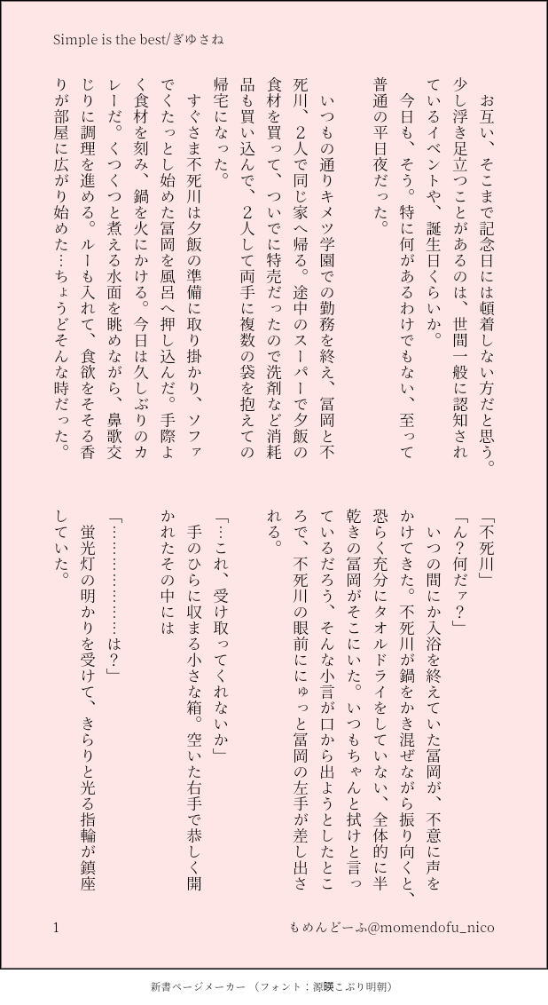 もめんどーふ☆quiet followDONE投下φ(゜゜)ノ゜ぎゆがmarry meする話(ルー語)キメ学軸ぎゆさねです書いてる内に「いや、ぎゆなら、さねなら…」って色んな解釈浮かんで迷いましたがこれもひとつの形と言うことで、楽しんでいただけたら幸いです #ぎゆさね teethingRing show all(+4 images) Tap to full screen (size:618x1132).Repost is prohibited Let's send reactions! freqpopularsnackothersPayment processing Replies from the creator Follow creator you care about!☆quiet follow もめんどーふDONEぎゆさね版ドロライ「焼き鳥、しっぽり」DDぎゆさね2人きりで2次会する2人の話 4 もめんどーふDONE余生ぎゆさね心願成就を果たしたぎゆの話 5 もめんどーふDONE現役ぎゆさねワンライ「狩人、狼」の幕間ぎゆが気を失ってる間の話※少しですが流血描写があります。苦手な方はご注意ください 4 もめんどーふDONEぎゆさね版ドロライ「狩人、狼」現役ぎゆさねさねの救助に向かうぎゆさんの話※ご都合血鬼術が出てきます、苦手な方はご注意ください 5 もめんどーふDONEフロセキュぎゆさねぎゆさね版ドロライ「雷雨、傘」と、その続きのさらに続きの話※注意※下記の要素を含みます、苦手な方はご注意下さい・さねが体を売ってお金を稼いでいます・台詞だけですが、モブと絡んでいる描写があります 13 もめんどーふDONEフロセキュぎゆさねぎゆさね版ドロライ「雷雨、傘」と、その続きを纏めたものです※注意※下記の要素を含みます、苦手な方はご注意下さい・さねが体を売ってお金を稼いでいます・台詞だけですが、モブと絡んでいる描写があります・書いている本人はハッピーエンドのつもりですが、人によってはそう思わないかもしれません 13 related works Kasumi KiriuDOODLE【ぎゆさね】※18歳(高卒)未満閲覧禁止遅くなりましたが💦💦ホワイトデーポストで頂いた素敵なお返しをお題にして描きました😊ありがとうございました❣フロセキュぎゆさね🌊🍃勤務中に制服を着たままいたす2人。シチュなど苦手な方はスルーをお願いします🙇しっかりinしてます🍌背後注意⚠ Kasumi KiriuDONE【ぎゆさね】6月9日69の日ということで🍌描きたいとこだけ1ページ漫画です18歳未満閲覧禁止🈲 Kasumi KiriuDONE【ぎゆさね】2022ハロパロネタです🔞してやったりな北風🍃ちゃんがまんまとぎゆカサコに返り討ちにあうお話。全4P。後半🍌出ますので18歳未満閲覧禁止です× 4 koketamaDOODLEねこちゃん🐱 ymnkTRAINING練習ー i7_osk5DOODLEぎゆさねせっすす表情の練習 koketamaDOODLEねこちゃん🐈⬛ Kasumi KiriuDONE【ぎゆさね】🔞18歳未満閲覧禁止原画展グッズののトミセンジャージが上下セットではなく上しかなかった事に端を発したネタです。勝手にセンシティブジャージと銘打っております。もろに出てますので18歳未満は閲覧禁止です× 3 きゃれみMENU新刊サンプルr-18部分です18歳以上ですか?(yes/no) 4 recommended works i7_osk5DOODLEぎゆさねせっすす表情の練習 Kazu*🍃DOODLEぎゆさねドライブ🎶🚗💨🎶昼休みにお出かけする二人もっとちゃんとした車🚙描きたくて練習中の合間の落書き✏️ もめんどーふDONE昨日上げたものですが、盛大に上げ間違えたためやりなおしorz昨日リアクション下さった方、すみませんでした😭キメ学。何てことはない日常のぎゆさねです。 5 もめんどーふTRAININGとりあえずイベントごとには乗ってみるスタイ(ryひなまつりのぎゆさねさねがおひな様ってのは、もう自然の摂理と思ってる もめんどーふREHABILIワンライ/水溜り、雨音できてないDKぎゆさねです 4 もめんどーふDONEワンライ「賭け、自信」のぎゆさんサイドの話色々、こんな風に書きたいとか、こんな言い回ししてみたいとか考えはするけど、から回っていく侍八スタイル 5 かいね せぴあDONE大好きなサンちゃん(むうちゃん)のお誕生日にSSを勝手に(笑)書いて送り付け、そのSSに素的なイラストを描いてくれました❤️もうイメージバッチリ過ぎて私が大興奮🤤🤤表情とかホント堪らんのです💕サンちゃんありがとぉ💕『PIXY』R-18🍌出てます襲い受けパスワード:🌊🍃英字4文字 10 もめんどーふDONEぎゆさね版ドロライ「旅立ち、心残り」原作軸ぎゆさね弔うぎゆとそれを見届けるさねの話1.0h 4 もめんどーふDONEフロセキュぎゆさね体を売ってるさねと、買ってるぎゆの話⑥最終話ですあとはちょこっと後日談を書きたい 9