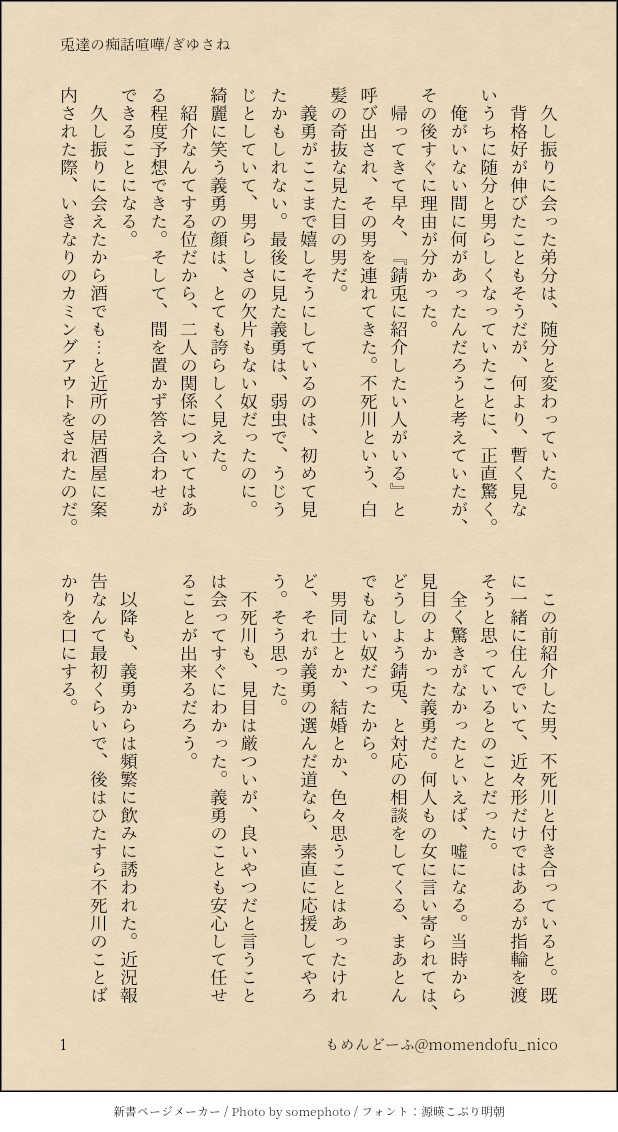 もめんどーふ☆quiet followDONEちょっと前にかいたぎゆさね+🐰の🐰側キメ学 #ぎゆさね teethingRing show all(+4 images) Tap to full screen (size:618x1132).Repost is prohibited Let's send reactions! freqpopularsnackothersPayment processing Replies from the creator Follow creator you care about!☆quiet follow もめんどーふDONEぎゆさね版ドロライ「焼き鳥、しっぽり」DDぎゆさね2人きりで2次会する2人の話 4 もめんどーふDONE余生ぎゆさね心願成就を果たしたぎゆの話 5 もめんどーふDONE現役ぎゆさねワンライ「狩人、狼」の幕間ぎゆが気を失ってる間の話※少しですが流血描写があります。苦手な方はご注意ください 4 もめんどーふDONEぎゆさね版ドロライ「狩人、狼」現役ぎゆさねさねの救助に向かうぎゆさんの話※ご都合血鬼術が出てきます、苦手な方はご注意ください 5 もめんどーふDONEフロセキュぎゆさねぎゆさね版ドロライ「雷雨、傘」と、その続きのさらに続きの話※注意※下記の要素を含みます、苦手な方はご注意下さい・さねが体を売ってお金を稼いでいます・台詞だけですが、モブと絡んでいる描写があります 13 もめんどーふDONEフロセキュぎゆさねぎゆさね版ドロライ「雷雨、傘」と、その続きを纏めたものです※注意※下記の要素を含みます、苦手な方はご注意下さい・さねが体を売ってお金を稼いでいます・台詞だけですが、モブと絡んでいる描写があります・書いている本人はハッピーエンドのつもりですが、人によってはそう思わないかもしれません 13 related works Kasumi KiriuDOODLE【ぎゆさね】※18歳(高卒)未満閲覧禁止遅くなりましたが💦💦ホワイトデーポストで頂いた素敵なお返しをお題にして描きました😊ありがとうございました❣フロセキュぎゆさね🌊🍃勤務中に制服を着たままいたす2人。シチュなど苦手な方はスルーをお願いします🙇しっかりinしてます🍌背後注意⚠ koketamaDOODLEねこちゃん🐈⬛ きゃれみMENU新刊サンプルr-18部分です18歳以上ですか?(yes/no) 4 i7_osk5DOODLEぎゆさねせっすす表情の練習 koketamaDOODLEねこちゃん🐱 Kasumi KiriuDONE【ぎゆさね】2022ハロパロネタです🔞してやったりな北風🍃ちゃんがまんまとぎゆカサコに返り討ちにあうお話。全4P。後半🍌出ますので18歳未満閲覧禁止です× 4 ymnkTRAINING練習ー Kasumi KiriuDONE【ぎゆさね】🔞18歳未満閲覧禁止原画展グッズののトミセンジャージが上下セットではなく上しかなかった事に端を発したネタです。勝手にセンシティブジャージと銘打っております。もろに出てますので18歳未満は閲覧禁止です× 3 Kasumi KiriuDONE【ぎゆさね】6月9日69の日ということで🍌描きたいとこだけ1ページ漫画です18歳未満閲覧禁止🈲