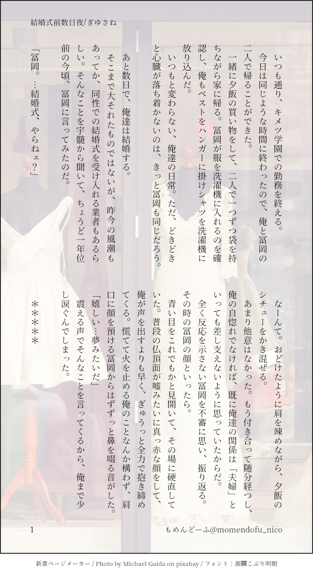 もめんどーふ☆quiet followDONE胸につかえた何かを吐き出したくてかいたものキメ学ぎゆさね結婚式(オンリー)まで数日のお話 #ぎゆさね teethingRing show all(+3 images) Tap to full screen (size:618x1132).Repost is prohibited Let's send reactions! freqpopularsnackothersPayment processing Replies from the creator Follow creator you care about!☆quiet follow もめんどーふDONEぎゆさね版ドロライ「焼き鳥、しっぽり」DDぎゆさね2人きりで2次会する2人の話 4 もめんどーふDONE余生ぎゆさね心願成就を果たしたぎゆの話 5 もめんどーふDONE現役ぎゆさねワンライ「狩人、狼」の幕間ぎゆが気を失ってる間の話※少しですが流血描写があります。苦手な方はご注意ください 4 もめんどーふDONEぎゆさね版ドロライ「狩人、狼」現役ぎゆさねさねの救助に向かうぎゆさんの話※ご都合血鬼術が出てきます、苦手な方はご注意ください 5 もめんどーふDONEフロセキュぎゆさねぎゆさね版ドロライ「雷雨、傘」と、その続きのさらに続きの話※注意※下記の要素を含みます、苦手な方はご注意下さい・さねが体を売ってお金を稼いでいます・台詞だけですが、モブと絡んでいる描写があります 13 もめんどーふDONEフロセキュぎゆさねぎゆさね版ドロライ「雷雨、傘」と、その続きを纏めたものです※注意※下記の要素を含みます、苦手な方はご注意下さい・さねが体を売ってお金を稼いでいます・台詞だけですが、モブと絡んでいる描写があります・書いている本人はハッピーエンドのつもりですが、人によってはそう思わないかもしれません 13 related works ymnkTRAINING練習ー koketamaDOODLEねこちゃん🐈⬛ Kasumi KiriuDOODLE【ぎゆさね】※18歳(高卒)未満閲覧禁止遅くなりましたが💦💦ホワイトデーポストで頂いた素敵なお返しをお題にして描きました😊ありがとうございました❣フロセキュぎゆさね🌊🍃勤務中に制服を着たままいたす2人。シチュなど苦手な方はスルーをお願いします🙇しっかりinしてます🍌背後注意⚠ きゃれみMENU新刊サンプルr-18部分です18歳以上ですか?(yes/no) 4 i7_osk5DOODLEぎゆさねせっすす表情の練習 koketamaDOODLEねこちゃん🐱 Kasumi KiriuDONE【ぎゆさね】6月9日69の日ということで🍌描きたいとこだけ1ページ漫画です18歳未満閲覧禁止🈲 Kasumi KiriuDONE【ぎゆさね】2022ハロパロネタです🔞してやったりな北風🍃ちゃんがまんまとぎゆカサコに返り討ちにあうお話。全4P。後半🍌出ますので18歳未満閲覧禁止です× 4 Kasumi KiriuDONE【ぎゆさね】🔞18歳未満閲覧禁止原画展グッズののトミセンジャージが上下セットではなく上しかなかった事に端を発したネタです。勝手にセンシティブジャージと銘打っております。もろに出てますので18歳未満は閲覧禁止です× 3