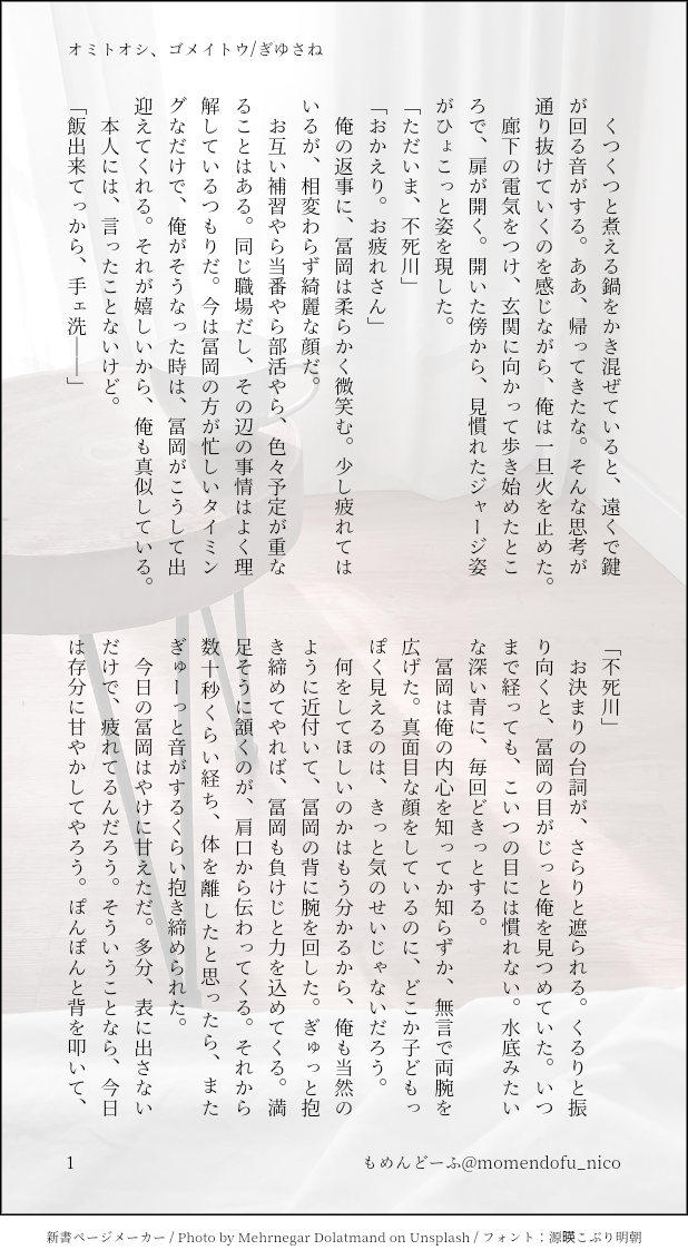 もめんどーふ☆quiet followDONEキメ学ぎゆさねただいちゃいちゃしてるだけの話ぎゆさんの台詞を極力排除した結果 #ぎゆさね teethingRing show all(+3 images) Tap to full screen (size:618x1132).Repost is prohibited Let's send reactions! freqpopularsnackothersPayment processing Replies from the creator Follow creator you care about!☆quiet follow もめんどーふDONEぎゆさね版ドロライ「焼き鳥、しっぽり」DDぎゆさね2人きりで2次会する2人の話 4 もめんどーふDONE余生ぎゆさね心願成就を果たしたぎゆの話 5 もめんどーふDONE現役ぎゆさねワンライ「狩人、狼」の幕間ぎゆが気を失ってる間の話※少しですが流血描写があります。苦手な方はご注意ください 4 もめんどーふDONEぎゆさね版ドロライ「狩人、狼」現役ぎゆさねさねの救助に向かうぎゆさんの話※ご都合血鬼術が出てきます、苦手な方はご注意ください 5 もめんどーふDONEフロセキュぎゆさねぎゆさね版ドロライ「雷雨、傘」と、その続きのさらに続きの話※注意※下記の要素を含みます、苦手な方はご注意下さい・さねが体を売ってお金を稼いでいます・台詞だけですが、モブと絡んでいる描写があります 13 もめんどーふDONEフロセキュぎゆさねぎゆさね版ドロライ「雷雨、傘」と、その続きを纏めたものです※注意※下記の要素を含みます、苦手な方はご注意下さい・さねが体を売ってお金を稼いでいます・台詞だけですが、モブと絡んでいる描写があります・書いている本人はハッピーエンドのつもりですが、人によってはそう思わないかもしれません 13 related works koketamaDOODLEねこちゃん🐱 ymnkTRAINING練習ー Kasumi KiriuDOODLE【ぎゆさね】※18歳(高卒)未満閲覧禁止遅くなりましたが💦💦ホワイトデーポストで頂いた素敵なお返しをお題にして描きました😊ありがとうございました❣フロセキュぎゆさね🌊🍃勤務中に制服を着たままいたす2人。シチュなど苦手な方はスルーをお願いします🙇しっかりinしてます🍌背後注意⚠ Kasumi KiriuDONE【ぎゆさね】🔞18歳未満閲覧禁止原画展グッズののトミセンジャージが上下セットではなく上しかなかった事に端を発したネタです。勝手にセンシティブジャージと銘打っております。もろに出てますので18歳未満は閲覧禁止です× 3 Kasumi KiriuDONE【ぎゆさね】6月9日69の日ということで🍌描きたいとこだけ1ページ漫画です18歳未満閲覧禁止🈲 Kasumi KiriuDONE【ぎゆさね】2022ハロパロネタです🔞してやったりな北風🍃ちゃんがまんまとぎゆカサコに返り討ちにあうお話。全4P。後半🍌出ますので18歳未満閲覧禁止です× 4 i7_osk5DOODLEぎゆさねせっすす表情の練習 きゃれみMENU新刊サンプルr-18部分です18歳以上ですか?(yes/no) 4 koketamaDOODLEねこちゃん🐈⬛