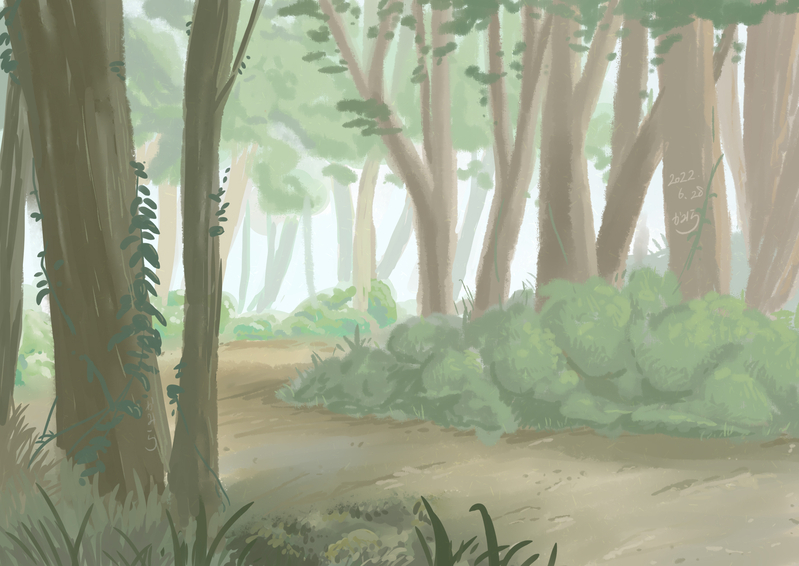 本の絵を真似して森の練習。