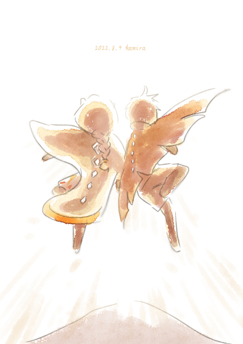 二人手繋ぎでジャンプした時にポーズが鏡合わせになる瞬間が好き