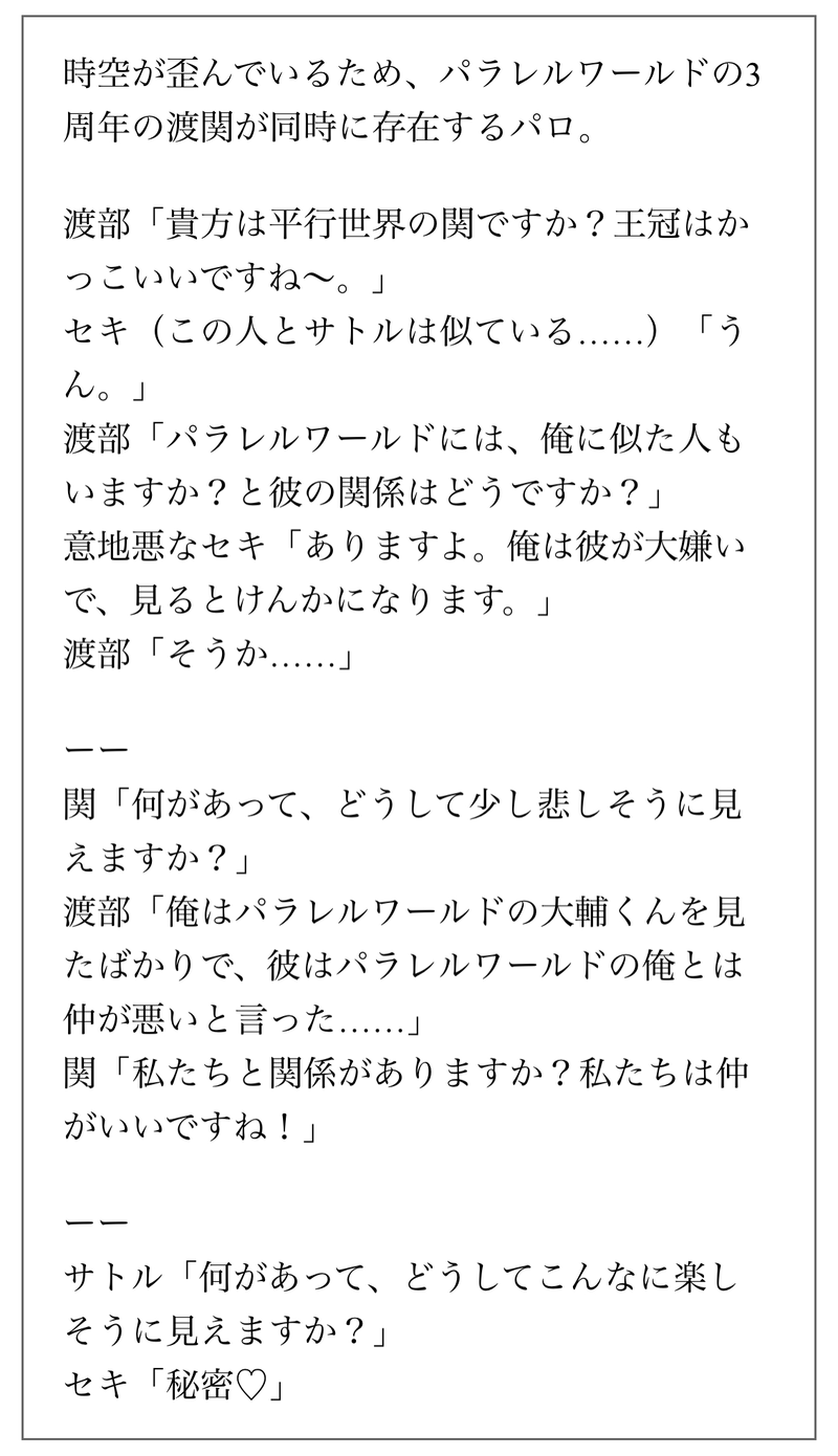 餅粉。☆quiet followDONEお題箱より。極力セリフを活かした形にはしました!語尾等少し変えてる所があります。お題を有難うございました! show all(+3 images) Tap to full screen (size:1170x2033).Repost is prohibited 餅粉。DOODLE今年も宜しくお願いいたします⛄️ 餅粉。DOODLE8thすたぱわたせき漫画。これまでのすたぱカードのわたせきがわちゃわちゃしてるので注意。 8 餅粉。DONEお題箱より。2枚目はおまけの幻覚強めの妄想です。お題を有難うございました! 3 餅粉。DONEお題箱より。衣装の構造が分からないところは何となくで描いてます。2枚目は色々妄想した絵です。お題を有難うございました! 3 餅粉。DOODLE本年も宜しくお願い致します🐉 3 餅粉。DONEお題箱より。「現」を歌うわたせきでOKとメッセージを頂いたのでカラオケで歌ってもらいました。2枚目は初めてクロスオーバーを描いたのでその時に色々考えた妄想です。 3 recommended works gohan_oishiinaDONE #腐タマイ版深夜のワンドロワンライお題:「深夜飯」CP:菅服制作時間:60分 gohan_oishiinaDONE #腐タマイ版深夜のワンドロワンライお題:「瞳」CP:菅服制作時間:120分 kuroexeDONE #腐タマイ版深夜のワンドロワンライお題:『同棲』CP:ひやかぐタイトル:「お邪魔します」から変わる日作成時間:多分ワンデイ(24h)+2h近く※トータル初参加です。2hオーバーした辺りから開き直って気の済むまでやりました。色んな機能との取っ組み合いでしたが楽しかったです。お題ありがとうございました! mireoudonMOURNING #腐タマイ版深夜のワンドロワンライ小説のまとめです 菅服ばかり一部手直しなどしています 9798 monroe_sigrDONEさいぼすけべ小説 ワンライチャレンジですお題 マシュマロ🔮が買ってきた洗顔ネットで2人で遊ぶ話pass; fly me to the moon の時のふーちゃん〇〇←の部分(6文字) 2219 汐(しお)DOODLEぐども(C・F) 2 wonemu_trpgDOODLEプル夜現行未通過❌らくがきとか 29 3chumosakuTRAININGポイピクを久しぶりに使いたいので、Xの方で上げてたやつでちょっと練習です🙏 3 mqube015DOODLEクリスマスなのでトランセンド
