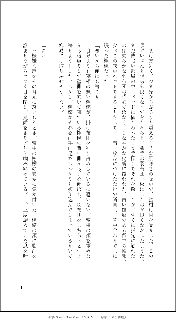 shishiri☆quiet followPAST檸蜜 show all(+6 images) Tap to full screen (size:618x1132).Repost is prohibited Let's send reactions! freqpopularsnackothersPayment processing Replies from the creator Follow creator you care about!☆quiet follow shishiriPAST果物 ホラーちっく、かな? 14 shishiriPAST果物 2 shishiriPAST果物いろいろ 22 shishiriDONE2024年書き納めの果物です。来年も楽しんで書けたらいいな、と思ってます。 2133 shishiriDONE檸檬の話 2148 shishiriPAST果物の話 まとめ前に檸蜜で入れたのも間違えて入っちゃってます。 26 recommended works tennin5suiDOODLEゆるゆる果物版ドロライ:お題「詳細」 1610 tennin5suiDONEシトバスが嬉しくて書いたやつ。ちょっとだけ修正 763 tennin5suiDONE絵描きさんのイラストから小説書かせていただきました!成炭さんのこちらのイラストからです(https://twitter.com/hsnh_kankan/status/1612132886509158402?s=46&t=I8SllO0WqrU48dJMDg8mOg)ありがとうございました! 893 Yosida_GenMEMO⚠️斎左種つけセス パスワ限定20↑(yes/no)左がメスイキしちゃって絶倫になっちゃう斎...みたいなおマンガ描きたい…のメモ春画 KoharuWatcherDOODLE サブローDOODLE⚠️大人出茶えっちえっちの時いっぱい手ぎゅっぎゅしててほしい 2 🐟️( ’-’ 🌭)DOODLE用心棒さんの眉毛はBだとヨウジンボウスキーに教えてもらった📝 T_T_T_A_NDOODLE还是🐺🐰 8131nomanomaPASTGODARCA げんみ❌ 自陣OK🙆♀️自陣関連まとめ 自陣誘拐編 9