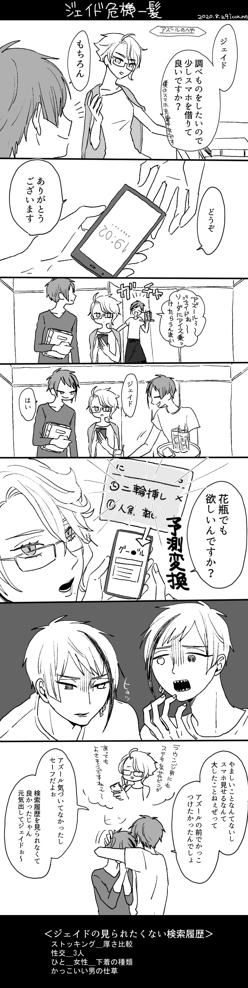 DONEイドアズで、勝手に子供作って育ててたアズくん話その③。今回はジェ視点。子供達の出番は少なめで、イドアズ3人の会話が中心。例によって人魚の生態捏造が多分に含まれます。人魚という種族は個体数が少ない。これはツイステッドワンダーランドの中でも常識の1つであり、人魚達自身も重々自覚している。元より過酷な海という環境で生まれ育つというのは困難な事だ。ましてツイステッドワンダーランドの海は、ハロウィンの時期になれば亡霊達がさ迷うこともある、ある種異界に等しい場所である。よって生存率は高くはない。身体的に屈強な種を元にした人魚達でも日々生存戦略を続けている。故に人魚は基本として多産な種族であるが、それ以上に発達したのが、性別の区別なく子を産むことができる魔法であった。