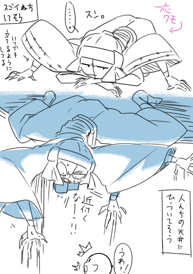ふと天井から音がするので灯りを近づけると、何かが、いる。いるというか、へばりついている。