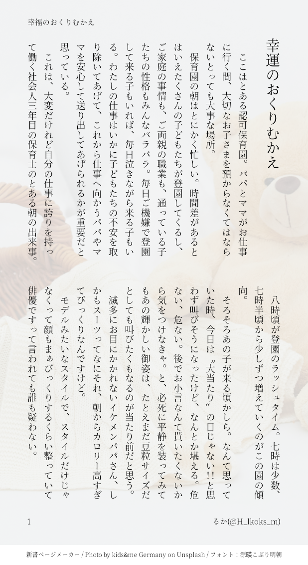今回は善良なモブ保育士目線ですので、苦手な方はご注意ください。