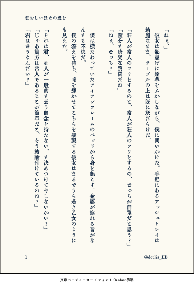 ドーリス 主だったものは過去にTwitterで垂れ流したものや、二次創作ではない妄想の駄文。それらを埋葬する、言うなれば集合墓地場的な場所。 ☆quiet follow Yell with Emoji Tap the Emoji to send POIPOI 33