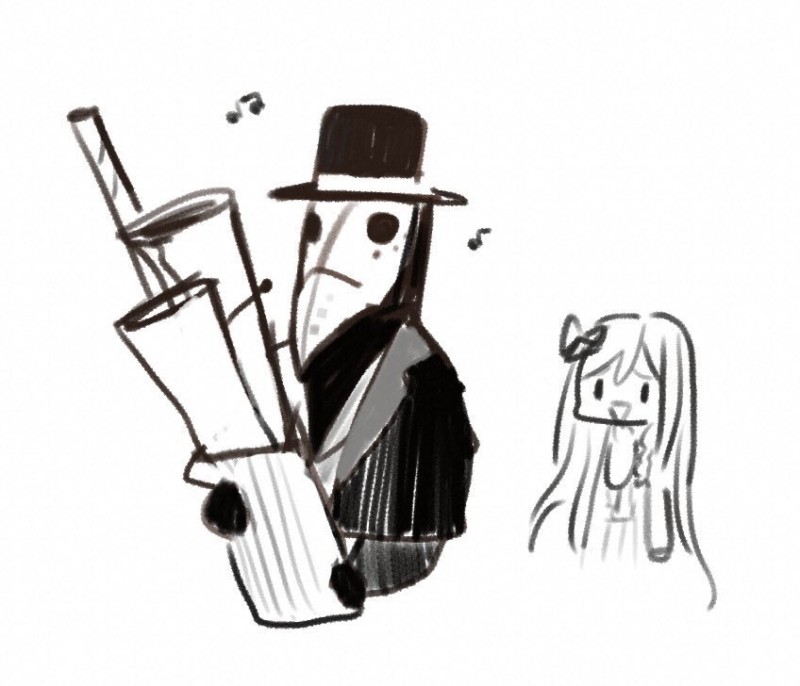 創作絵 キャラデザをネリネリしてたペストマスクの変な人の落書き お茶目