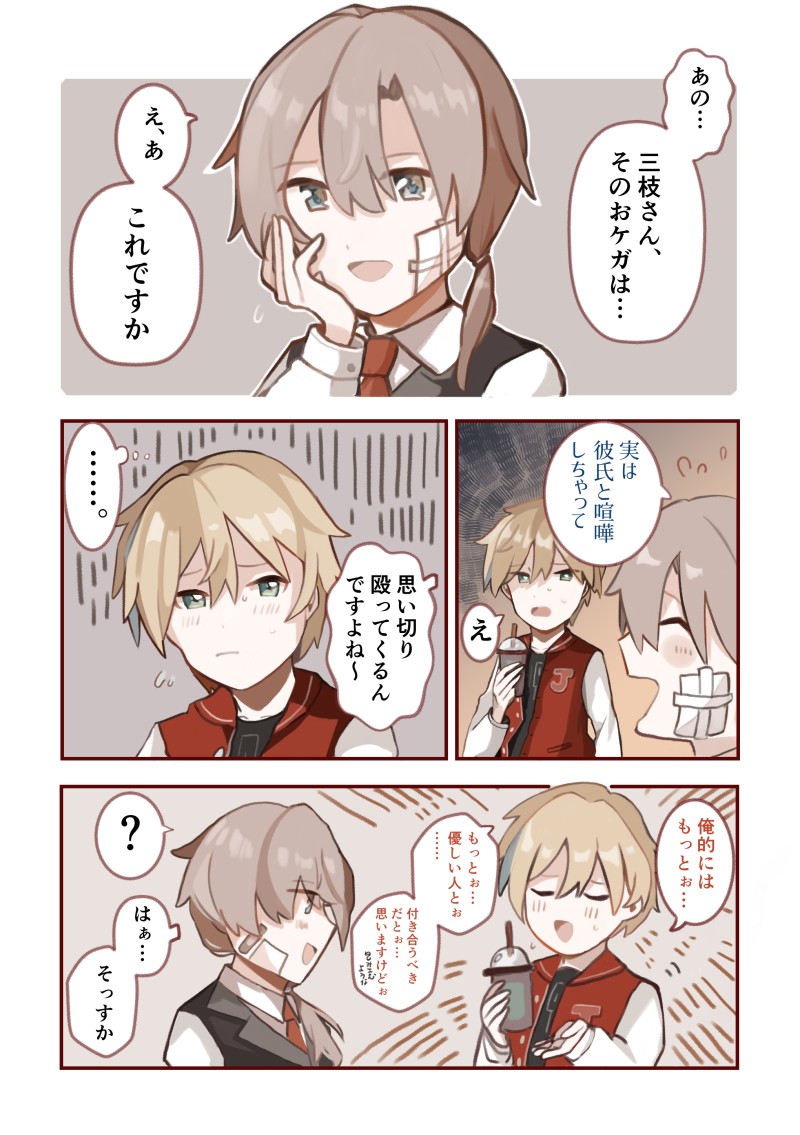 BL(?)かも DV彼氏(?)と付き合ってる男の子が友人の男の子と話してるみたいな漫画