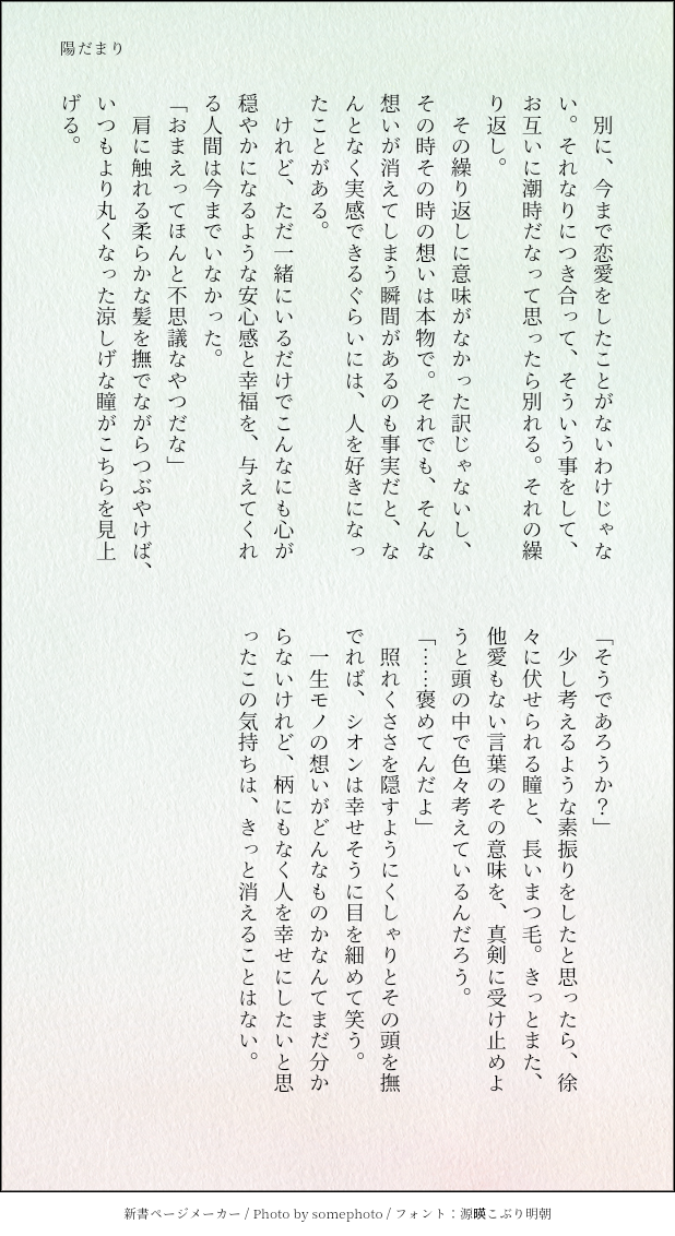 いちか☆quiet followMOURNINGやまシオ。書いてはみたもののなんだか納得いかなくてお蔵入りしてたから供養。もっとこの二人はふんわりキラキラな感じに書きたい。 ##やまシオ Tap to full screen (size:618x1132).Repost is prohibited Let's send reactions! freqpopularsnackothersPayment processing Replies from the creator Follow creator you care about!☆quiet follow いちかMOURNINGモブヴァン(R18)の妄想メモ。 984 いちかMOURNINGゔぁんきら。裏アカ男子な大学生きらくんパロ妄想のメモ。ゔぁんさんがただのクズなのでなんでも大丈夫そうな方だけどうぞ。 3 いちかMOURNINGやまシオ。書いてはみたもののなんだか納得いかなくてお蔵入りしてたから供養。もっとこの二人はふんわりキラキラな感じに書きたい。 recommended works soy_ksDONE捧げ物② s_sakura0326PROGRESSこれから色塗り(BGM:マジLOVEキングダム セットリスト)頑張ります。 fugちゃん♡DONE【hlpr6期にょた♀ぱろ】「大きい瞳」6期の3人が歌ってるのえじシオナギにしか見えなくて死んじゃったから…"大きい瞳"の彼、大和のことだったらいいな〜って…3人とも大和が好きなの…しかし本人は鈍感。グループ内恋愛サイコー!!! 2 fugちゃん♡DOODLE【hlpr '11秋卒コンにょた♀ぱろ】「Give me 愛」の愛様があまりにも瑛二すぎて興奮してしまった。"こんな風にアナタ好きで居られる子はどこを探したって居ないよ"ってすごい瑛二じゃない?控えめに見えてめっちゃ我の強さ出てる好き。あとどーしてもれーなの猫耳をナギに付けたかったのと、シオンちゃんにちゃゆみを感じてしまってやばい。みんな大和のこと好きなんだよな……可哀想に…つらい(悦) 鈴おやつ。DOODLE いちかMOURNINGやまシオ。書いてはみたもののなんだか納得いかなくてお蔵入りしてたから供養。もっとこの二人はふんわりキラキラな感じに書きたい。 準備中ですDONE2023/2/25 コロイカパーティ2おめでとうございます!スカライの短い漫画3Pです。キス表現あります。 4 samaichimydadsDOODLE🐴1️⃣⚧️⚧️TDD一郎くん😌top surgeryの前、胸が嫌い1️⃣くんがかわいいね〜🐴さんは彼をからかうことが好きw ruinu1130DOODLExiaolumi Modern AU comic 21 pages*English*This is a continuation of the previous novel, so the story is not over.*Since it was a sudden drawing, the whole thing is rough and some pages are almost written below.*Although its viewable for all ages, the premise is for adults. (some scenes are suggestive and / or explicit) 23