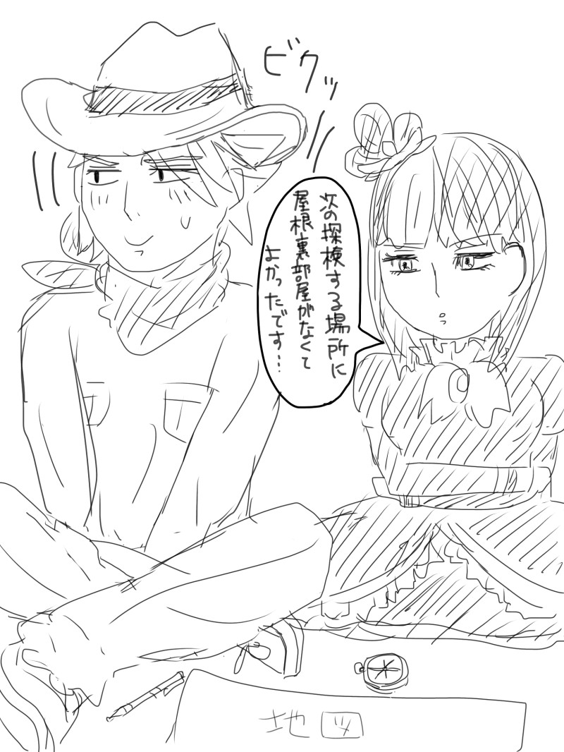 探検家味クッキーとブラックベリー味クッキーのストーリー読んでニヤけた勢いで描いたけど、2枚目色塗りとバランス失敗のボツ絵