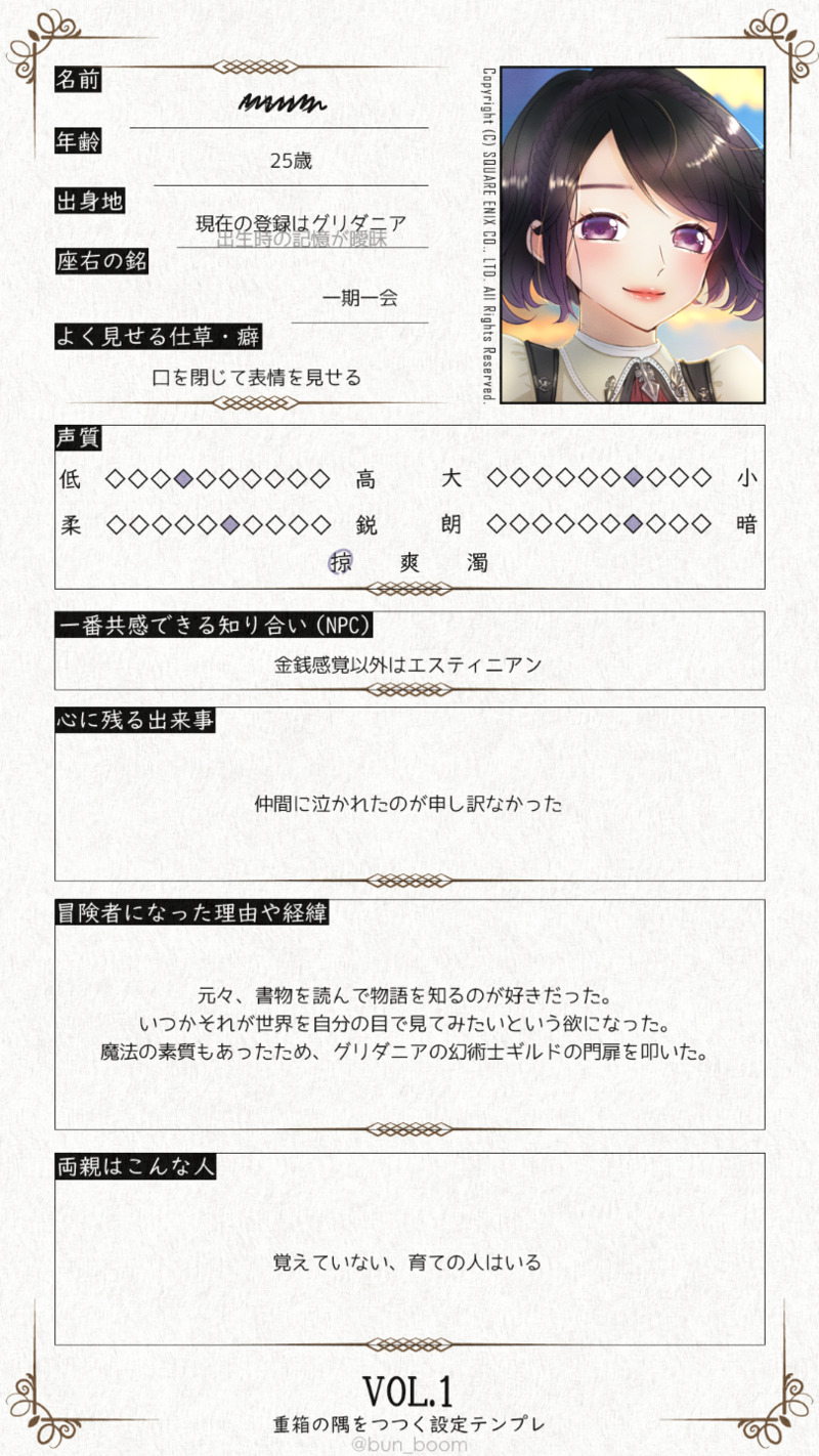 小森千代☆quiet followDONEFF14での自ヒカセン紹介です。二次創作。割と細かく書いたので苦手な方は注意してください。テンプレお借りしました。 #FF14 #自ヒカセン #ヒカセン♀ show all(+4 images) Tap to full screen (size:810x1440).Repost is prohibited Let's send reactions! freqpopularsnackothersPayment processing Replies from the creator Follow creator you care about!☆quiet follow 小森千代DONE※自アゼム注意エメアゼヒュです。ずっと仲良しだったんだろうなぁ 小森千代DONEFF14での自アゼム紹介です。二次創作。割と細かく書いたので苦手な方は注意してください。テンプレお借りしました。 5 小森千代DONEFF14での自ヒカセン紹介です。二次創作。割と細かく書いたので苦手な方は注意してください。テンプレお借りしました。 5 小森千代DONE漆黒での話。若干の捏造等あります。※性別表記あり※種族表現なし※うちの子注意※エメ光♀表記ですが付き合ってません、お話したりご飯食べたり時々キスしてます。ソルの身体を借りてるとはいえ元は普通の人間の身体なので、意外と人間らしい事もできるのかなと思い書いてみました。 5102 related works 小森千代DONEFF14での自ヒカセン紹介です。二次創作。割と細かく書いたので苦手な方は注意してください。テンプレお借りしました。 5 recommended works さんごさんDONE もゆりDOODLE無のララオス達 十(トオ)DOODLEぽいぴくどないなもんやっていう、らくがき open_oboroDOODLEアルフィノぼっちゃん oomoriDONE蒼天騎士団ゲリック グリノー ゼフィラン 3 二次創作LogDOODLEうちのリテイナーさんたちです oomoriDONE nokibi_akiDONEお揃いのヘルメット 5 Thyella_RipiDONEもちシエラ。
