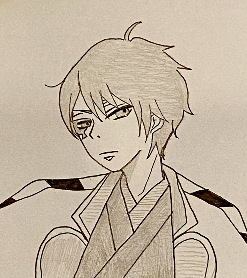 メモ帳にペンで落書きしたのを色鉛筆で塗った自己満足絵( ´ ▽ ` )❤︎
