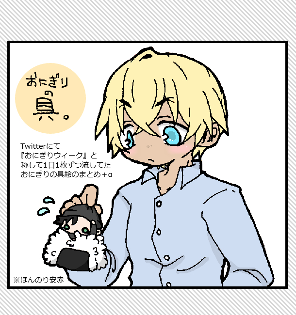 ろみじあ☆quiet followDONEツイッターで1週間の間1日1枚流してたおにぎりの具絵まとめ。基本ピンですが、コンビだったりトリオだったり…1枚だけカプもので安赤あります。最後の3枚はぼーなすとらっく(?)でツイに流してない追加分です。 show all(+13 images) Tap to full screen (size:610x650).Repost is prohibited Let's send reactions! freqpopularsnackothersPayment processing Replies from the creator Follow creator you care about!☆quiet follow ろみじあDONE【となりにいるかもしれぬい】まとめました今思うとタイトルがホラーっぽいw 9 ろみじあDOODLE某所で2025年3月末から4月頭まで毎日一枚ずつ流していたまんまるまとめですまんまるAMAK週間はもともと一枚絵なので最終日の一枚のみ入れましたキャラまるまるしてます…注意? 8 ろみじあDONEシクトリ9で展示していた小ネタになります。ファーストネームで呼びあいたいふるやくんが奮闘する(?)安赤小ネタとアイス店で働くおきやさんの安沖小ネタ。沢山見ていただいてありがとうございました! 7 ろみじあDONE【4月18日追加】 9 ろみじあDONE『とあるふるあかさんちのてでいさん』2023年分まとめです。降赤前提ですが、メインはテデ&ぬいの疑似家族日常ほのぼの小ネタ。今回は小さじ程度の降赤成分ありです。 20 ろみじあDONEこちら、テディ愛6プレゼント企画のキーワード置き場でした。回答期間が過ぎたので差分のお祝い絵に差し替えました~(11月8日追記) recommended works ビリーDONE #2 れーくんとアカイのはなし 11 ぴっぴ(うどん)DONEシクトリ2022に展示の無配です年越し安赤パスワードはシクトリ会場に貼り付けしてます 6 aki_aki960807DONEシクトリ5の無配。パス外しました!ハロ嫁観て書きたくなったお話です。降谷さんは桜組をちゃんと心の中で整理付けてる感じがしたので。むしろ赤井さんの方が引きずってる?映画のネタバレ無し。(映画の内容には触れていません)そしかい前後、和解済、同棲している二人。日本の警察に手を貸すFBI。一年に一度だけ弱音を吐く赤井さんに、降谷さんは……。(季節無視ww) 3977 genso_akasyuDONEネットプリント番号です!試し刷りの写真はセブンのハガキのみで、ファミマ・ローソンは大きな差が感じられなかったので割愛しました。5/15中なら大丈夫だと思われます。#シクトリ5 2 ナガソネDONE安赤。シクトリ5無配です。安赤です テデ井さんネタ 8 ナガソネDONE赤ブーの安赤プチで出したペラ本です。支部にも再録していますがシクトリ4でまとめてここで見れるようにアップしました。ちょっとズレた安赤です。 9 ナガソネDONEシクトリ7開催おめでとうございます。サブマリン映画でバボライ呼び記念もかねてバボとライ時代で。かなり強風な日であるという説明を最初に入れ忘れたのでその設定で見てください。😂ご覧いただきありがとうございます! 4 阿枫茶啊DOODLE❤️ 4 yorihitoDOODLE赤♀ amak 魔ガン 魔王様は舌長め設定 巨体化(赤小型化?)してなめなめまずい予感がしたらお戻りくださいめくるめくねっとりNight描きたかった 2