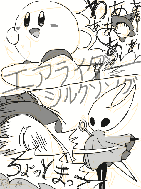 ピクシブに載せるに至っていないキョロちゃん、カービィ、ホロウナイトなどのらくがきを置いておきたい。ホロウナイト多め。