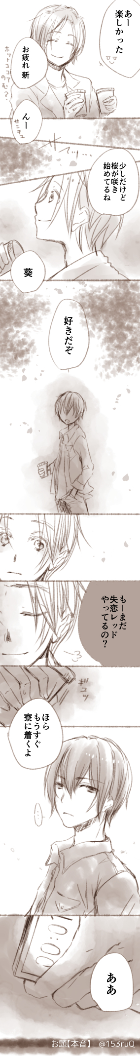 るく🍓🍼☆quiet followDONE新葵ワンドロ #腐向け Tap to full screen (size:284x2139).Repost is prohibited Let's send reactions! freqpopularsnackothersPayment processing Replies from the creator Follow creator you care about!☆quiet follow るく🍓🍼DOODLEイブステep8見てきました!久しぶりの獄族かけるんが生き生きとしてて可愛かったので一方その頃の恋くん妄想とメインの二組の解釈が一致して大興奮した走り書きです。ネタバレしかないのでワンクッション 2 るく🍓🍼PROGRESS色塗り練習も兼ねて斬心いっくん描いてます るく🍓🍼DOODLE祭莉ちゃんアイコン るく🍓🍼DOODLE開会式のあれ るく🍓🍼DOODLEでかモンとらのいる日々。 るく🍓🍼DOODLEiPad購入したのでお試しにDLしたメディバンでざっくりらくがき三月。サドビ楽しみです! related works ゆkりえGIVE UP #年齢操作 #団庄 #腐向け 団庄の日なので🐎🍵 らむごろうDOODLE幼児化とはいえ乱寂になってしまった幼稚園児に勝手にされただけだから先生は悪くない、悪くないんだ… 2 metaDOODLEモブ門裸コートでいたら変態だと間違われて本物のド変態に玉吸われる凶運の持ち主 ゆきたかPASTコナプラやや成人向け 2 北川素晴@ラシュオジと庶法DONE庶法のたぶん初夜です。R-18なのでワンクッション。快楽のあまり少し大胆になったほせさんと、そんなほせさんの魅力に浸かってる徐兄です。 metaDONE家牛 erorunn_0405DOODLE※4枚目閲覧注意猫の日なので猫耳になる呪いをかけてみたよ!🐯「俺のせいで変な呪いに巻き込んじまってごめん!で、でも2人とも似合ってるよ!」↓↓↓その後ごじょー先生が薬もってきてくれて皆無事元に戻ります 4 北川素晴@ラシュオジと庶法DONE庶法の姫始めです。あんまり姫始めらしくはないですが…徐兄の無邪気さに弱いほせさん可愛いです。 ro.MAIKING後から足せると思ったら、間違えたやつを消したつもりが消えてなくて(たぶんと言うか確実にバグ)同じ絵が3枚並ぶ地獄になったのでここまで描けたよと当初の予定と違う順番でとりあえず上げ。3枚目はあれまだオチじゃない(まだと言ってて続きも別にオチとかあるわけでもない)マイタグも勝手にタグになるらしいのはっずいなーと最悪しぶに出戻るのもまとめるのめんどいな 5 recommended works nii👶PASTa3②(5枚目以降腐向け・最後4枚ワンドロなので驚きの白さ) 11 おにぎりたろうBLANK腐向け擬人化ラクガキ #どうぶつの森擬人化 #腐向け #アナログ #ラクガキ 6 有村千代DOODLE眼鏡玲央さん 夏海ゆずDOODLE零薫 gend_aiPAST別垢に載せた二次創作もん ありす(元うさ実、マネキネコ)DOODLEよしよし♡ vara727DOODLEラッキースケベ 7 Karaage_WasiDONE殿愛で会in summerで作成したバニーの日で現パロのリナルト×ヴラドです。大体ヴラド坊ちゃんに悪知恵を吹き込むのはシュテファン君だと思ってます。二枚目はちょっと背後注意です。いわゆる。袋とじってやつです、すみません。 2 もどきちDeep Desire2022/12/31ガミタンくんの大晦日(かわいくてめんどくせぇ酔っぱらいの世話するの大変ね)そしてついったに投げていたぷらすあるふぁの落書き 3