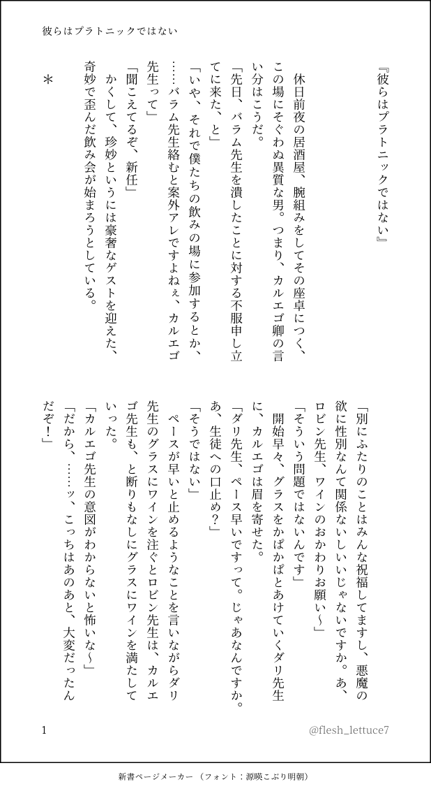 くわの実のジャムを 大きな鍋をのぞき込むと、血のように赤黒い液体が、グツグツと煮立っていた。底が焦げ付かないよう、シチロウが木べらでゆっくりとかき混ぜるたび、半端に崩れた果肉が水面から顔を出す。黒に近い深いワインレッド色の果肉は、砂糖によって吐き出された同色の液体の中では明確な選別がつかず、なにかの臓物のように見える。手に持った「人間の生態のすべて」という古めかしい本が、余計に生徒たちが騒ぐ噂話――バラム先生は生徒で実験をしているというのを増幅させている気がしてならない。