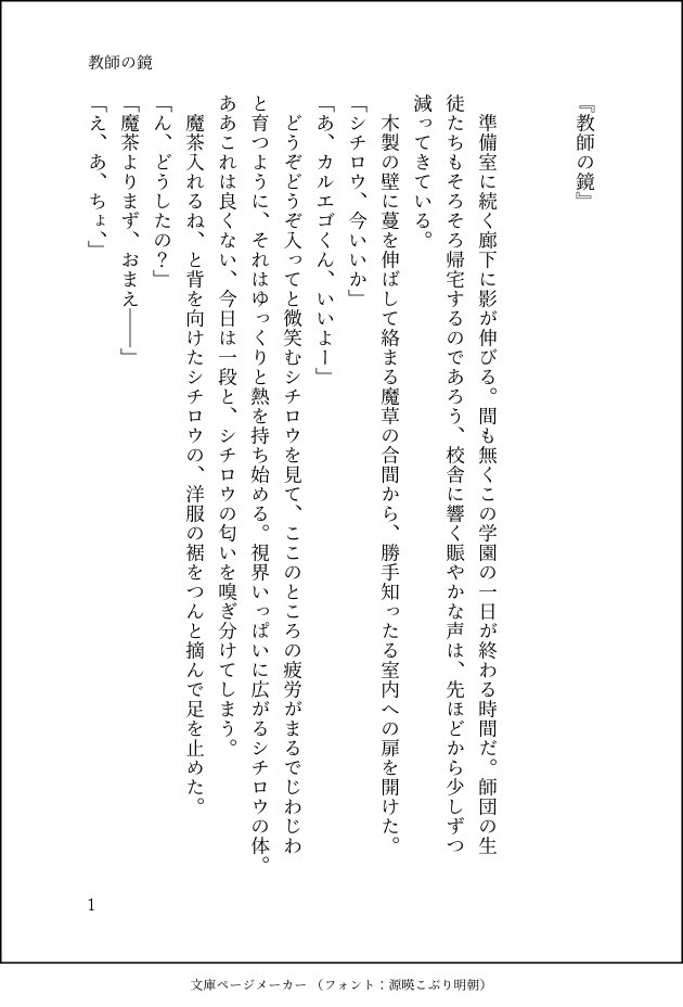 lettuce☆quiet followDONE【シチカル】放課後、エゴくんが準備室にいつものようにきたときのお話です。シチカルに巻き込まれるさぶろとあずあず。可愛いに可愛いを掛け算すると可愛いんだなぁ…新しい扉が開かそうだなぁ…なぁ? #シチカル ShichiKal show all(+4 images) Tap to full screen (size:630x928).Repost is prohibited Let's send reactions! freqpopularsnackothersPayment processing Replies from the creator Follow creator you care about!☆quiet follow lettuceDONE【シチカル】ロウの出張帰りで悪ノリするエゴくんのお話。「きみ今日、ノリノリだったね」「ふ、楽しかったな」ていうシチカル、可愛すぎて自分で書いててワナワナする。煽り魔エゴくん。いつだってエゴが女王で、ロウは優しいところが好き。 4 lettuceDONE【シチカル】いるまくんの質問コーナーに答えるエゴ先です。『先生、恋人に嘘をつけない、てどんな気分ですか?』 4 lettuceDONE【シチカル】僕はきみだけなのに、なんかきみからの想いが伝わらないんだよな〜、もしかして僕じゃなくても相手できちゃうんじゃないの?ていうロウの不安から他人の姿でセッススしてエゴくんが拒否反応起こして嘔吐する話です。 4 lettuceDONE【シチカル】ロウの無自覚ドS話。こういうシーンをいくつも書きたいし読みたいですね!ロウにされるがままになるエゴくんも最高に可愛い!🥳 lettuceDONE【シチカル】えっちな小話。イくとき「好き」て言って、ていうシチカルの話。かんわいい。 2 lettuceDONE【シチカル】いちゃつき中に虚偽鈴発動する話。虚偽鈴に深く潜りすぎると、目の前の呼びかけにも応答しなくなるタイプのロウです☺️集中!!ふんわり本誌ネタを含みます。 7 related works sandai_sanTIRED飽きたやつのおまけシチカルたまには悪魔らしい感じのも…と思って暗め。でも多分「俺に止められないはずない」って言い切るよ、えご氏は(〜happy end〜) Greatpiyomofu74DONE【🩺🌹💴🍲】半裸、事後表現注意(2/2P)前のらくがきの続きのようなやつ。半裸で事後表現あるので自己責任でお願いいたします。 2 lettuceDONE【飲み会シチカル】前回教師陣に潰されたロウのお礼参りに乗り込んできたエゴくんが潰される話。 5 ミナセSPOILER第191話「イルミ応援団!」感想取り急ぎ言いたいことを少しだけ。 あごだしDONE🌹が🍲にパフパフしてあげるお話。本番なしだけど、18禁で。 4093 ミナセDOODLEにょたえご落書き。年始に描いてあったラフを今頃😅おっぱい出てるので注意。 96910iiyDONE魔フィエゴのチラ見せに狂って書きました。魔フィエゴは多分tkbにピアスしてると思います! R18にしてありますが、直接の描写はないです。 2637 あごだしDONEピカレスクシチカル完成! 2 カノコDOODLEうなじと胸とお股が弱いエゴ recommended works 翠(sui)TRAINING sandai_sanTIRED飽きたやつのおまけシチカルたまには悪魔らしい感じのも…と思って暗め。でも多分「俺に止められないはずない」って言い切るよ、えご氏は(〜happy end〜) sandai_sanDONE少し前に頂いたお題絵のおまけ3枚支部に上げる際には並べて載せよう〜🙌☺️ 3 sandai_sanTRAININGシチカル自主練💪 ミナセMOURNINGSS名刺メーカー様で作成したやつのまとめ。すべてシチカルです。 10 天水☔DONEお題『お気に召すまま』付き合ってるシチカル 2 天水☔MOURNING学シチカルス魔ホ買ってもらったシチのツーショ撮りたい話。⚠一番最後にイラスト練習したものが付いてます⚠ 4 あごだしDONEピカレスクシチカル完成! 2 _46_46DONE薔薇を育てるシチロウさんと薔薇を食べてしまうカルエゴさんと、それを目撃するイルマくんの話です。恐らく付き合っていないふたりです。 11