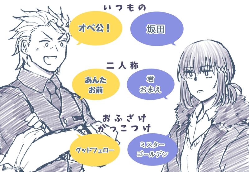 弊バディ時空でバディを組む予定の坂田くんとオベ公の互いの呼び方備忘録