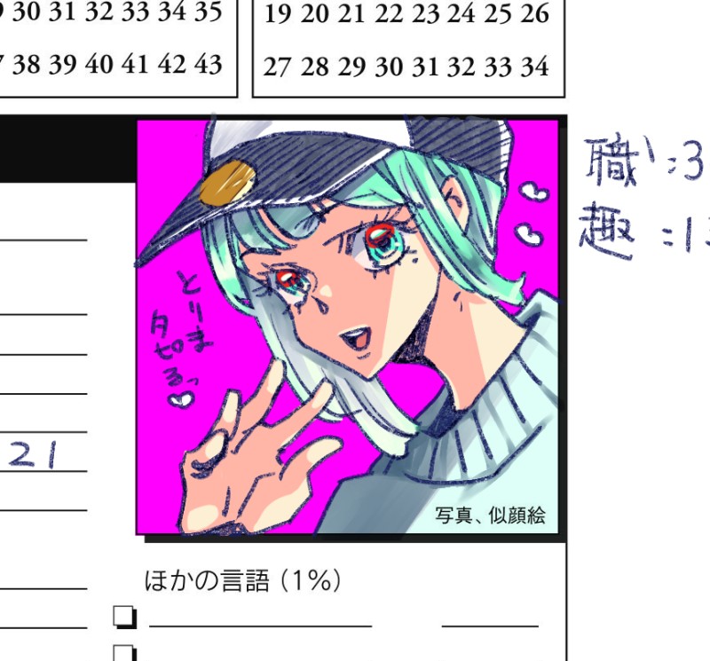 ユキヒロ☆quiet followDOODLE探索者 #オリジナル original Tap to full screen (size:866x807).Repost is prohibited Let's send reactions! freqpopularsnackothersPayment processing Replies from the creator Follow creator you care about!☆quiet follow ユキヒロDOODLEボツサークルカット+ボツコマなど⚠️最後だけ屍体 4 ユキヒロDOODLEボツ表紙+ボツコマ 3 ユキヒロDOODLE嘘になるかもしれない予告 ユキヒロMOURNING+雑記 2 ユキヒロDOODLE⚠️女体化・男体化 3 ユキヒロDOODLE+他版権 4 related works サブリミナル美DONE線画だけのときの方が良かったので、完成カテゴリーに入れとこう。 🍨🍊DOODLE #創作 #オリジナル ##かふの創作 サブリミナル美MAIKINGメイキング?みたいなもの。 3 サブリミナル美TRAINING頭の中で「横向いた睨む鬼を描きたいなあ」とざっくり考えてたので、落書きしてみた。アタリも下書きも無しでボーッとしながら描いたのに、楽しかったし迷いもなかった。意外と「描きたい!」と思ったら何も考えず描けば良いのかも?違うな、頭の中にちゃんとイメージすることが大事?うーんもう分からん。でも、手癖でも昔よりは描けるってことは、自分の引き出しは少しずつでも良くなってるのかな~。 From_六番PASTぽいぽい サブリミナル美PROGRESS「穏やかで知性のある奴は丈の長い服を着せて…」と思ったけどその固定概念どこからきたんだろ?露出激しくても特別なんとも思われない文化の世界だってあるかもしれないよなあ…?そういえば。下書き記事のコメント欄に描くことで、途中保存もできるようになったし、何よりスマホを横にするだけですぐ確認ができるようになったので私賢い(賢くない)終盤に気付く愚かさよ…。 サブリミナル美MAIKING途中。色塗ると潰れそうだなあ、と不安を抱きーの、髪型が決まらねーの、な絵。 サブリミナル美MOURNINGヒヨッてコントラストよわよわ サブリミナル美PROGRESSどんどんイっちゃってる奴になってるけど、描いてて楽しいので仕方ないね(なくないね)ケーキ配達人は、出来上がりを想像して色を置いていく塗り方だったのに対し、こっちは影の上に肌色重ねてる。不健康そうな肌には便利なんだけど、単純にそう言う肌の色が想像できないんだよな…。不健康と色黒の肌色バリエーション作らねば。でも今はちょっとこの塗り方が面倒に感じるのは進歩かも。 recommended works volke.PASTうちの子『ヘルミーネ・トレーガー』ちゃん抱き枕カバー風絵です♪#うちの子 #R15 #オリジナル #オリキャラ #創作 #創作キャラ #ヘルミーネ・トレーガー #パンツァープッペ #義手 #義足 #パワードタイツ #抱き枕 #抱き枕カバー #アナログ #アナログ絵 ヨヲキDONE立ち絵 AndAlba0PAST塗る気がおきなかった子 きりゅーDOODLE女の子も描かないと、本当に描けなくなってしまう…!( ˇωˇ ) 3 こはねPROGRESSデジタル分からないマン ゐろはPROGRESSバレンタインイラスト~!!色ラフ!明日一日で描きあげます!!超特急で! 📛DOODLE CaptainMihoPROGRESSアポロン・フレイムは電波体のアポロンとエランドが電波変換した姿。もしアポロンが女性キャラクターと電波変換したらどんな姿になるのかを妄想したら、ただのアポロン・フレイムになった。悲しい。ちなみに、変換される女性キャラクター(2枚目)は強さを求める系キャラの設定。#流星のロックマン#オリジナル 2 ウジラーPASTディノニクスの化石っていうSFロボット物描いてた時の主人公でしたまた描きたい