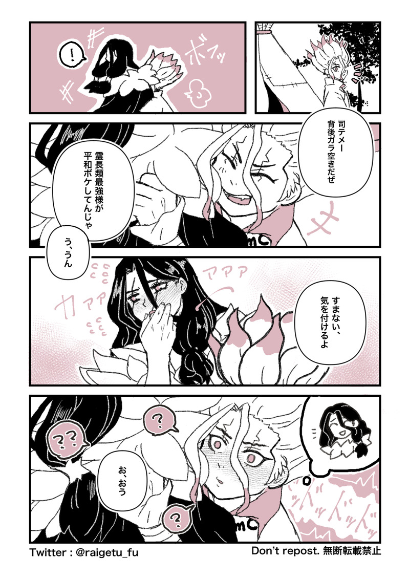らいげつ @raigetu_fu pkmnフリアメ/hq黒研/dcst司千※転載・AI学習禁止 ☆quiet follow Yell with Emoji Tap the Emoji to send POIPOI 77