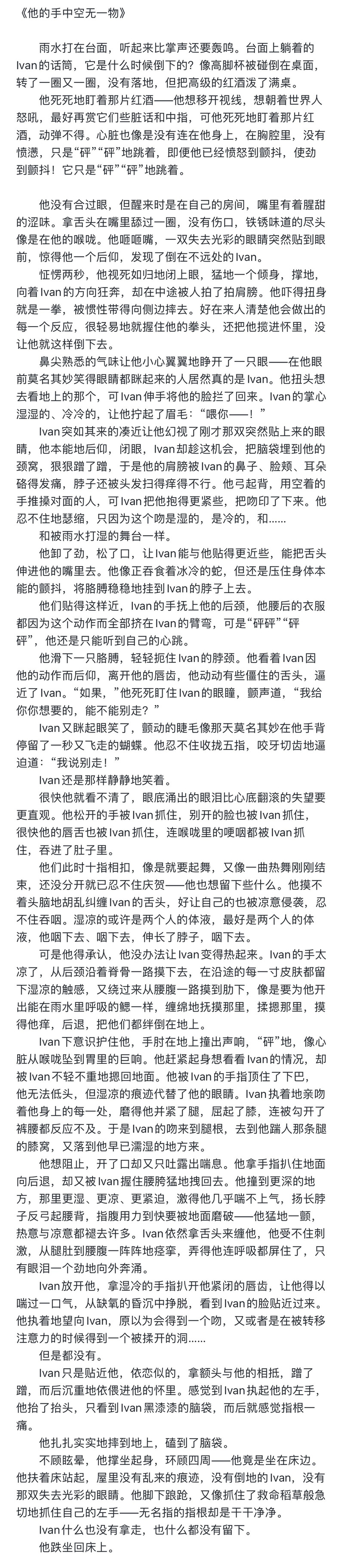 Yuzhouzhibei☆quiet followDONEcp:Ivan x Tillps:R要素含有《他的手中空无一物》 #ALNST #IvanTill #ivti Tap to full screen (size:898x4096).Repost is prohibited Let's send reactions! freqpopularsnackothersPayment processing Replies from the creator Follow creator you care about!☆quiet follow YuzhouzhibeiDONEcp:Ivan × Tillps:学paps:没有本垒《水汽》 YuzhouzhibeiDONEcp:Ivan × Tillps:乐队paps:同人女第一视角转第三视角ps:小白格子点开会加载,不是被吞了♡辛苦各位《关于我推的乐队》 YuzhouzhibeiDONEcp:Ivan x Tillps:只是在开心地嬉闹,为此我进行了巨大的OOCps:没有本垒ps:本意是后续会更新逃离这里的双活if,然后写两个人在外面大干特干,所以最后留了一句,本意不是亮刀(虽然到现在也没想后续)《不似梦中》 YuzhouzhibeiDONEcp:Ivan × Tillps:相较于《不做告别吗》,保留了大部分内容,执著地使用了“告别”词义里“诀别”的部分,更加强调了视线和情感学习,加入了新的嬉闹、贴嘴唇和告别。ps:小白格子点开会加载,不是被吞了♡辛苦各位 YuzhouzhibeiDONEcp:Ivan × Tillps:R6出现的舔手指画面,个人把时间线归在了R1开始前《不做告别吗》 YuzhouzhibeiDONEcp:Ivan x Tillps:R要素含有《他的手中空无一物》 related works oh_rufuDOODLE18↗OK!!!!!!!!!!! 5 RinDONEHoney moon 🌙( Yuri IvTiiV 🖤💚 ) hyeulDOODLECheer up. 6 EmanemoDOODLE imme_111DOODLE💗doodle ⑪ 演員paro《好喜歡前輩》 9p漫password : 8 numbersPlease see the URL of my profile to get the password.And confirm whether the button in the upper right corner of Poipiku is for adults. 9 bedlehREHABILIAlienStage Ivan×Till 926 RinDONETaking care of his hoobae. 💚( TiiV 💚🖤 ) EmanemoDOODLE RinDONESex mpreg( IvTi 🖤💚 ) recommended works JeffreyDOODLE #斑こは!!!마다쿠하!!! tt16000191DONE片想い⑫パス→ttの誕生日(フォローの上ホーム画面から見れます) 1712 qu_weDOODLE続・ホスト渉と姫英智の渉英。一応渉誕生日記念🎂※キャラ崩壊注意 2 loiz车队企划存档点DOODLE恶魔的信徒被上帝欺骗、被迫信仰魔鬼的神父泉✝作者:热焦lofter@ Echo @shro3347DONE[R18⚠️]fork X cake(上) 8 imme_111DONE💗doodle ⑤ Vest password : 8 numbersPlease see the URL of my profile to get the password.And confirm whether the button in the upper right corner of Poipiku is for adults. EunaDOODLE 2 yotsushimaru162DOODLEこはくちゃんのちっちゃいお口じゃ咥えられないのでは世界。エロくないですけどちょっと描いてあるのでR18。 3 acllyoDOODLE学パロイヴァティル エロ絵 18+?#ivantill