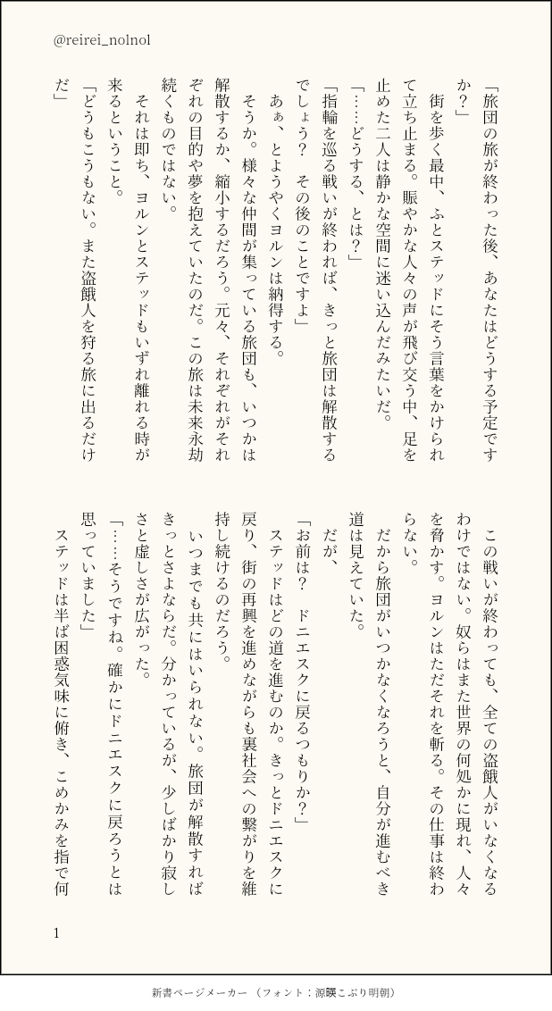 reirei_nolnol☆quiet followDONEヨルステ。旅団の旅が終わった後の話をする二人。糖分多め ##ヨルステ show all(+2 images) Tap to full screen (size:618x1132).Repost is prohibited Let's send reactions! freqpopularsnackothersPayment processing Replies from the creator Follow creator you care about!☆quiet follow reirei_nolnolDONE土近。気づくのが遅すぎたお話。重い。※近藤さんの死の描写があります。 4 reirei_nolnolDONEヒカテメ。抽象的に一夜を過ごしているだけ。 4 reirei_nolnolDONEヒカテメ。敵と戦って重傷を負うヒのお話。ちらりと出血と負傷描写がありますのでこちらに。 12 reirei_nolnolDONEヒカテメ。一夜を共にしているだけのお話。※一定期間後に公開制限します 14 reirei_nolnolPROGRESSヒカテメすけべまでの途中段階。いつかあげるつもりの尻叩き。 3 reirei_nolnolDONEヒカテメ。幸せだから臆病になる二人。匂わせ程度のいたしてる表現があるので注意。 4 recommended works tenseinowDONE鳥目の影片のみか宗まんがの続き。今回もまた興が乗って、余ったレースでお揃いのアンダーウェアを作っているという脳内設定で描きました。 2 おと🎶DONE友達以上恋人未満な終桂友達になったばかりで互いに距離感掴めてない付き合ってない⚠︎︎解釈違い等あったらすみません 3 utako2025DONE1/23に書いていたカミュ春です、ハッピーバースデーラブコメ! 7019 WowowakoPROGRESSOC comic ! Pjsk fan unit TT: deadlivestreamer 6 駄々/あやとDOODLEちょっと強めに抱かれるのが好きだったら私が嬉しい雑土18歳未満❌18⬆️?(y/n) 2 hopeDONE精神的にボロボロのフレンをヨシヨシしてあげる漫画ちょっとだけ背後注意 11 🏖🐬DOODLE--2025/1/23-- 雪風(ゆきかぜ)。DONE太陽♡六美鍋回での印象的な1シーン。 ౨ৎ♡DONEジロブンにジャージメイド着せてカメラ向けたら丸井に秒でじろー隠されて睨まれて中指立てられたい