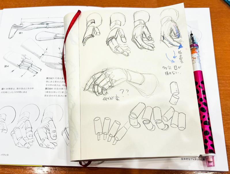 親指と他の指は向き合っているから描くの難しいらしい(本に書いてた)