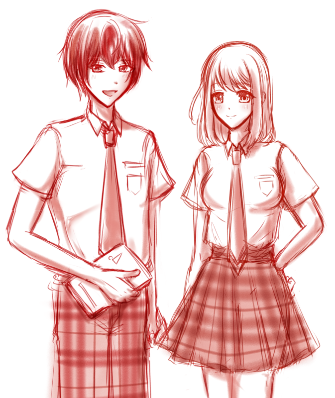 アニスタが遅れてきた夏なので夏制服描きたくて描いたら二人とも真面目っ子ぽいので学校案内パンフ感