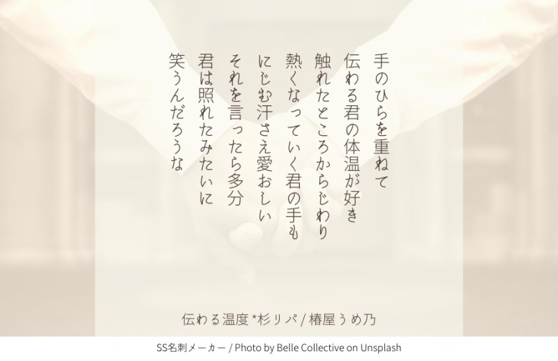 kashimedama☆quiet followDONE杉リパWebオンリー企画のワンライにチャレンジさせていただきました✨手のひらをつないで、二人のつかむ未来が幸せなものでありますように……💖 Tap to full screen (size:910x590).Repost is prohibited Let's send reactions! freqpopularsnackothersPayment processing Replies from the creator Follow creator you care about!☆quiet follow kashimedamaDONE【ウェディングケーキ風ブローチ】■杉元佐一■クリーム色のパールをメインに、イエローとレッドのガラスビーズを組み合わせてお仕立てしました。■アシㇼパ■ホワイト色のパールをメインに、ホワイトとブルーのガラスビーズを組み合わせてお仕立てしました。ぷっくりコロンとかわいく仕上がりました! 4 kashimedamaSPOILER 2 kashimedamaDONEpixivでも公開している「父へ」をtwitterで初めて公開したときのものになります。(内容はpixivのものと同じです)メーカーさんで作った画像と文章だけの小説と、また違った雰囲気で見ていただけるかな、と。書き込みボードでたくさん感想いただけて嬉しかったので再掲しておきます。ありがとうございました💕 4 kashimedamaDONE杉リパWebオンリー企画のワンライにチャレンジさせていただきました✨手のひらをつないで、二人のつかむ未来が幸せなものでありますように……💖 kashimedamaDONE第三回sgrp利き文字(@sgrp_kikimoji )企画さんに参加させていただいた分の作品です。Webオンリーと同時開催だったのでお目にかけていただいた方もおられるかもしれません。割といつもの感じで書いたので正解率高くて嬉しかったです✨二行にまとめるのがこんなに難しいとは……!!企画運営ありがとうございました💕 kashimedamaDONE第一回sgrp利き文字(@sgrp_kikimoji )企画さんに参加させていただいた際の作品です。お題の「瞳」、杉元さんの目のアンバーな感じがはちみつみたいに見えたりしたらかわいいかも……と思って書きました。画像読みにくいかもなので今度pixivにもまとめるかも。※原作程度の佐梅前提描写があります 4
