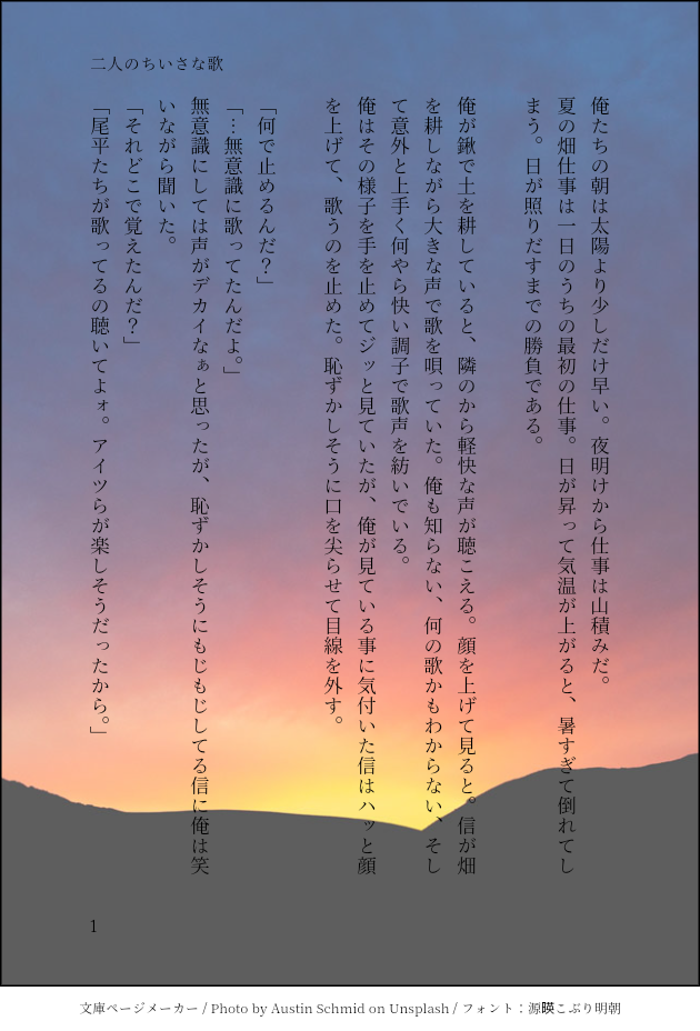 nasuoeya_skfan☆quiet followPAST2020年Twitterワンドロより。お題、信と漂です。二人にもこんな日常があったかと。 show all(+2 images) Tap to full screen (size:630x928).Repost is prohibited Let's send reactions! freqpopularsnackothersPayment processing Replies from the creator Follow creator you care about!☆quiet follow nasuoeya_skfanPASTTwitterログ。桜桃を巡る攻防とにゃんにゃん羌瘣。 4 nasuoeya_skfanPAST2020年Twitterワンドロより。お題、信と漂です。二人にもこんな日常があったかと。 3 nasuoeya_skfanPASTフォロワーさんの絵に滾った結果のSS。信瘣。全体公開できるけどPG12くらいのレーティング。 4 nasuoeya_skfanPAST2019年Twitterのワンドロより。お題:鬼灯うっすら毅貂。背景画像選び直ししてたら内容を若干推敲… 4 nasuoeya_skfanPAST2019年Twitter内の映画カウントダウン企画より。順番はテン政信、そして最後は漂の独白。 4