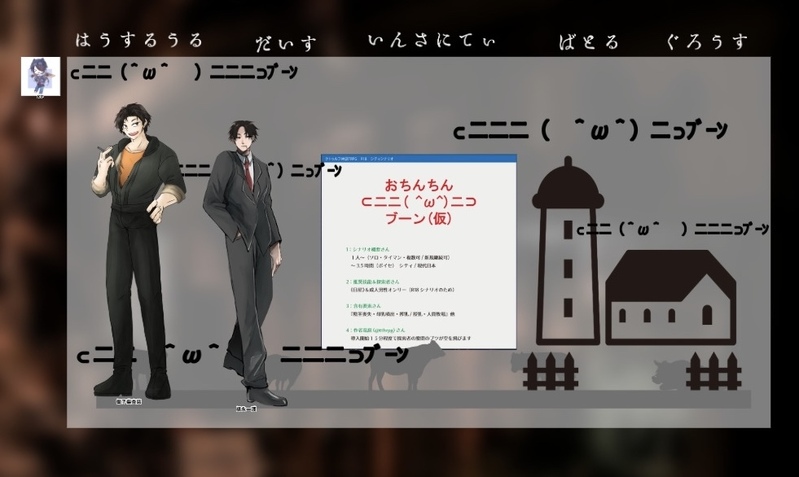 IsshokutaS☆こそフォロメモcoc6『おちんちん ⊂二二( ^ω^)二⊃ ブーン(仮)』作:-273℃/竜原様KP/KPC犬桃/御子柴 杏慈PL/PC六田さん/福永 一護🍓大福で行ってきたよー!!相変わらずすごいシナリオだった……なぁ俺たち、どんなシナリオにも行けるよな……!怖いものなしだ!また遊びましょうねー! タップで全画面(原寸:981x586)無断転載禁止 リアクションをたくさん送って応援しよう! よく使う人気おやつその他支払処理中 作者からのリプライ 気になる人をどんどんフォローしよう!☆こそフォロ IsshokutaSメモCoC6◤ GREEEEEEED!!! ◢作者:噓吐き少年様KPC / KP柑子木 清高 / もにゃさんPC / PL山桐 静夏 / 犬桃間仲木 言世 / たまさん北門 柊南 / 六田さん 2 IsshokutaSメモ山桐私服差分 5 IsshokutaSメモcoc『慄け!因習村』作:ゆめたろう様PL/PC六田さん/立花 敦犬桃/染葉 李果もにゃさん/笹野 友貴そもさん/小宮 秋津全生還!卒業生栄養価高い……!嬉し楽しでした!ももかは野生児だったようだおもしろかった~みんなありがとうございました🫶 2 IsshokutaSメモcoc『38℃のヨトゥン』作:たろ書房/くらたろ様KP/KPCもにゃさん/五所川原 千雪PL/PC犬桃/浅間 函人こげぬ▶︎君ヒポ▶︎鮪継続~~~千雪くんのスタイルがいいなってあんよずっと眺めてました可愛い~(?)シナリオ~~~普通に男の子ふたりって感じで可愛かったですなんかこう……地の身体が強い……健やかに歩いていって欲しいなありがとうございました! 2 IsshokutaSメモcoc6『おちんちん ⊂二二( ^ω^)二⊃ ブーン(仮)』作:-273℃/竜原様KP/KPC犬桃/御子柴 杏慈PL/PC六田さん/福永 一護🍓大福で行ってきたよー!!相変わらずすごいシナリオだった……なぁ俺たち、どんなシナリオにも行けるよな……!怖いものなしだ!また遊びましょうねー! IsshokutaSメモcoc『世界線の中庭』作:ハッカ海岸/ハッカ雨様KP/KPCそもさん/詩歌PL/PC犬桃/大木 くるみ中庭始まった~~~~~~めっちゃくちゃ可愛い~~~~~そんな可愛い2人で生活開始だ~! 2 おすすめ作品 GazKamurochoできた何してるの 真島の兄さん? 2 まっちゃらくがき⚠cuntboy/squirtingカントボーイ、潮吹き、手マン toha_wandoroyouできたトウ悠・パスワード:18↑?・🐗バースデーお祝いに書いたやつの続きです 5985 pphage418らくがき25.4.12燃晚 x_Solara_xらくがきThe Rev x_Solara_xらくがきHetstaine RinできたヌヴィリオR15くらい..です! 4 胡椒少々故障呼称らくがきコース擬人化まとめ2 64 Y印の雑多場らくがき2025/05/04🐹LobotomyCorporation配信 まとめ⚠️配信ネタバレ,ロボトミネタバレ注意字が(とてつもなく)汚い 6