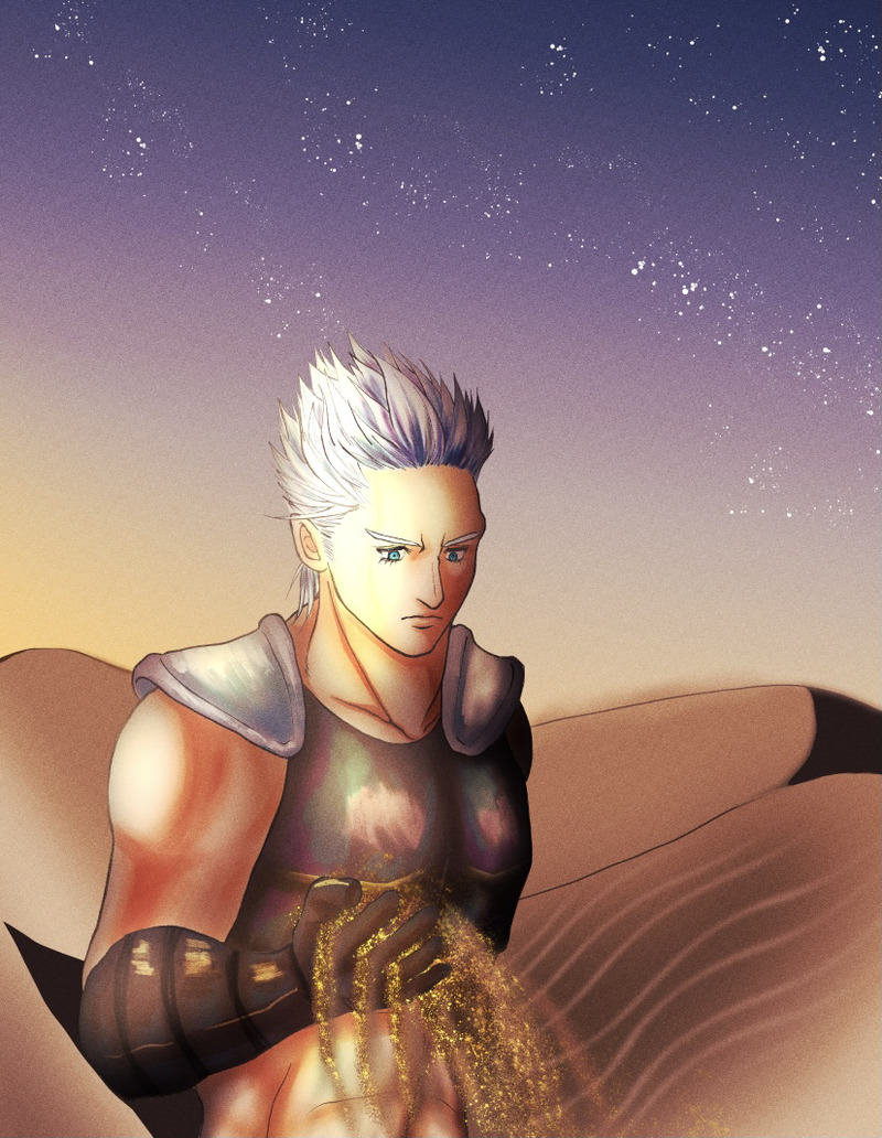 ロマサガ2 ノエル初描き。移動湖へ向かう途中のメルー砂漠にて。この後サグザーと再会するけど、何を思っていたんでしょうね。