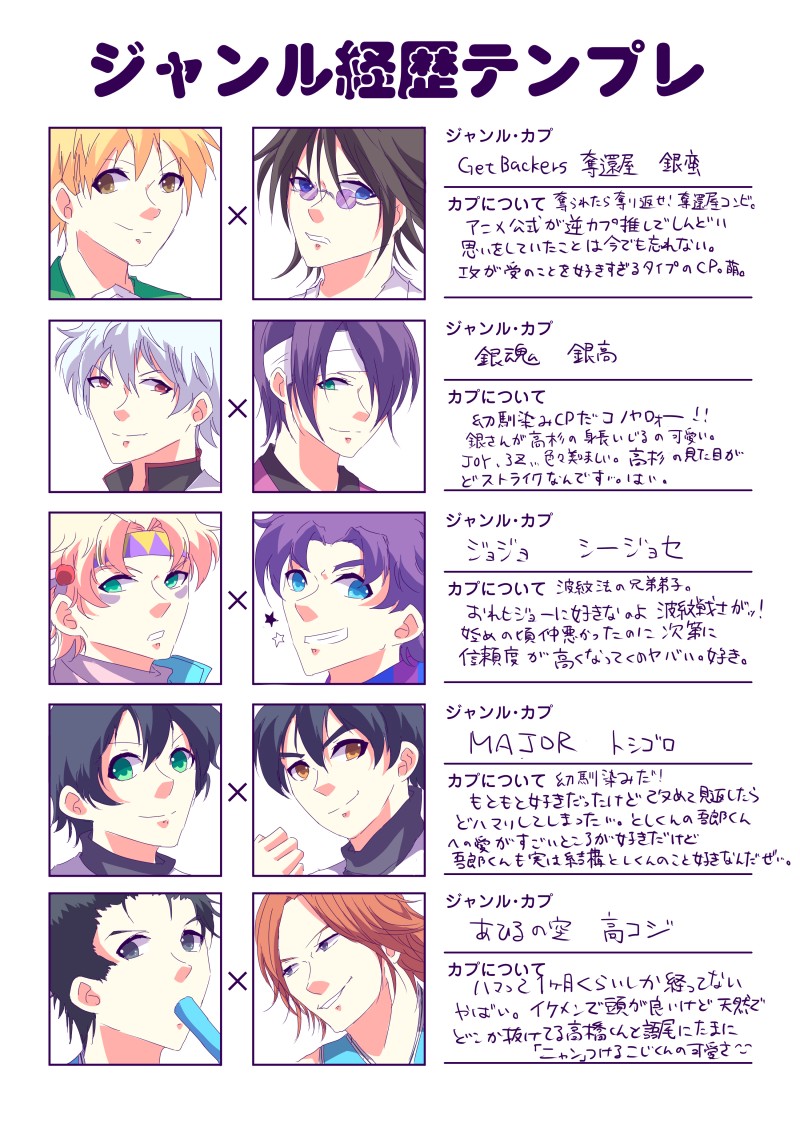 ジャンル経歴テンプレ。2枚目は落選組だけどみんな好きです…ほんと…。