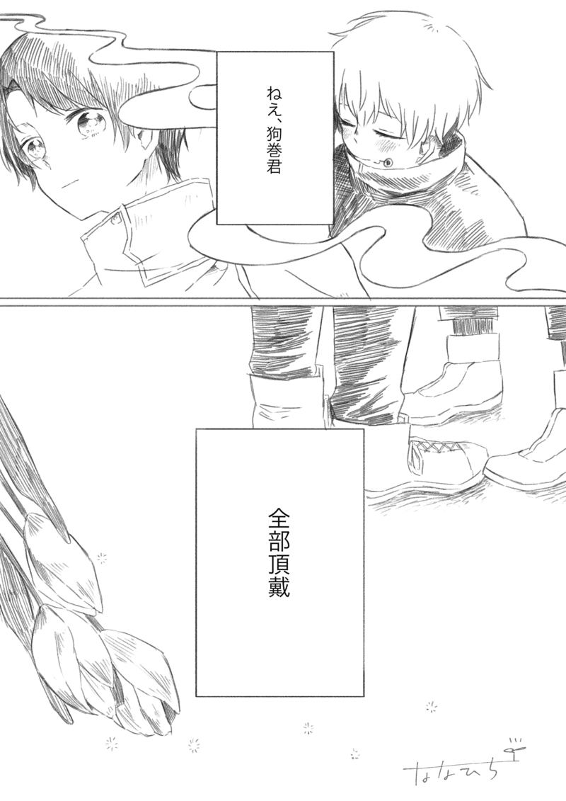 Twitter @nana7_yon 版権とホモ的要素のページです。絵柄のお許しいただける方はこっそり覗いていってください