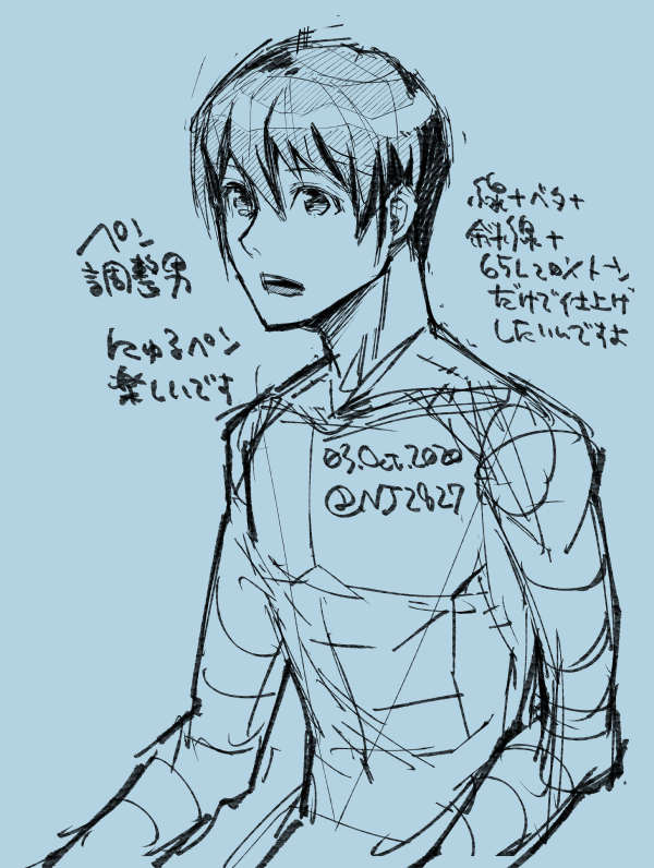 にゅるペンが楽しい。下描きやらくがき、ラフで使ったらテンション上がりそうと思って調整しました。今手癖だとこんな絵になるんだな~