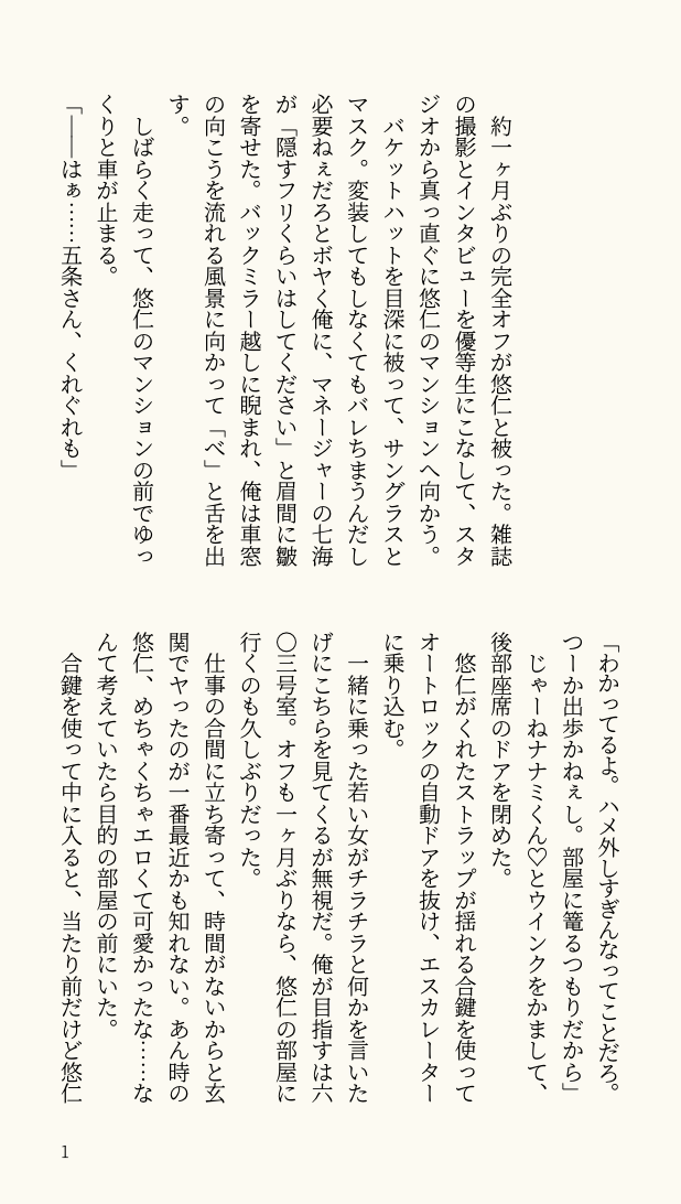 ve_q2s☆quiet followMOURNING書きかけ?らしき文を見つけたけど、ナニをしようと思ってたか忘れちゃったのでとりあえず供養年下×年上、俳優×一般人の五悠えっちじゃないけど喘いでるので一応🔑18↑? yes/no show hide show all(+3 images) Tap to full screen (size:618x1092).Repost is prohibited Let's send reactions! freqpopularsnackothersPayment processing Replies from the creator Follow creator you care about!☆quiet follow ve_q2sPROGRESS二人とも女装です!色々注意!!めちゃくちゃ途中なのでそのうちまた非公開にします😂🔑 18↑?y/n 9 ve_q2sDONE昔別のジャンルで書いた「玄関先で攻めを襲う受け」設定、好きすぎて五悠でも!!!!リメイクしました!!注意!!※謎の同棲軸※さとる(ド攻め彼氏)がゆーじ(さとるのネコちゃん)(紛れもなく受け)に襲われてます※積極的な受けだと思ってほしい※なんでも許せる方向けパス 18↑?y/n 9 ve_q2sMOURNING里見さんと6月に出した合同誌の軸の二人の、書きかけの話があったので、イチャイチャさせました!同棲パロです!ぬっるいスケベです!(y/n) 6 ve_q2sREHABILI欲求不満ゆーじくん(また0721ネタ)18↑? 5 ve_q2sCAN’T MAKE一個前にアップした床でくんずほぐれつした五悠、何故か続きました!!パスは変わらずです✌️ 7 ve_q2sCAN’T MAKE「え、すぐるお前朝帰り?」「そうだよ。任務が長引いてさ」「そういうことはさっさと言えよ!!」最後の一枚は鍵垢で2ラウンド目の流れをざっと呟いたやつです。なんか好きな流れなのでせっかくだし供養させてください😂🙏18↑?y/n 9 recommended works MothDONE 楽しいことしかないDONEまた漏らした このスカートパンツは気を抜くとやられる 4 ひじぎん工房DOODLE土銀ワンドロ「とろける」 masamune58DOODLEウインク☆ヨエルさんとラグくん 2 suzu_ange_oODONEバックルーム げんみ❌2枚目部屋差分 2 いぬかわDOODLE龍らくがき 11 くりいむDOODLEカンナの太ももで窒息死したい よしよしの🐈PROGRESSみこゆか最後は創作dtmできる人は本当にすごいと思います死ぬほどレイヤーを作って貯めておく習性があるので二回ほどやらかして悲鳴をあげています 3 よもももも木MENU1/26 ALL STAR27の新刊サンプルです。ブ擬セロハ(45)です。A5サイズ20P/200円です。よろしくお願いします。イベント間近になればお品書きをあげます。 4