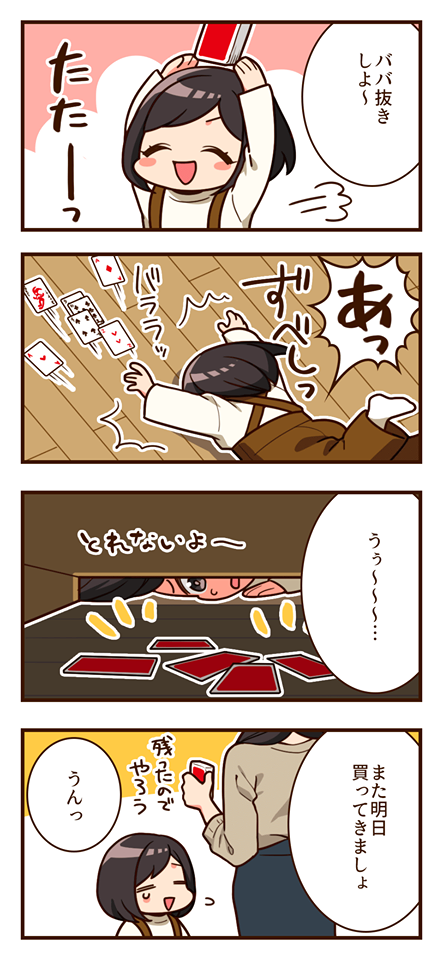 はなまるFX☆quiet followDONE食器棚の下に吸い込まれていったトランプです(笑)奥の方に行ってしまって流石にどかさないと無理そうでした(;´з`)娘さんにはまた買うと約束して、後日100均様にお世話になってきましたね♪ #はなまるFX hanamaruFx #4コマ fourPanelComic #4コマ漫画 fourPanelComic #絵日記 diaryWithIllustrations #日常 daily #女の子 girl #子供 child #オリジナル original #トランプ playingCards Tap to full screen (size:443x960).Repost is prohibited Let's send reactions! freqpopularsnackothersPayment processing Replies from the creator Follow creator you care about!☆quiet follow はなまるFXDONEあけましておめでとうございます〜( ´∀`) 2021年も何卒よろしくお願い致します〜m(._.)m 年末に大雪が振り年始は朝から雪かき(T-T) 身体中が痛いです〜(*_*) 今日からまたよろしくお願い致します〜(*^^*) はなまるFXDONE本日が2020年最後の投稿となります💁🏻♀️次回は2021年1月4日からを予定してます😊今年も本当にありがとうございました🙇🏻♀️来年もよろしくお願い致します&良いお年を~です🎍 はなまるFXDONEサンタさんを信じている息子。お願いされた物がなくても代替えができないのでギリギリだと探すのが大変(-.-;)我が家には受付の締め切りがあるのですが、毎回なかなか決まらずヒヤヒヤします(^◇^;) はなまるFXDONE先日、息子が参観日のお知らせを学校から持ってきました。小さい反抗期はあるものの来て欲しいと思ってくれるだけで嬉しいです(T_T)きっと高学年になると来なくていいと言われるんだろうな。。。 はなまるFXDONE今日で11月も終わりますね(^_^*)日増しに寒くなり、お鍋や温泉など温かいものが恋しい季節(*´꒳`*)皆さんの冬といえばは何ですか(´∀`)?? はなまるFXDONE運動会の練習で毎回6位の息子。あまりに落ち込んでいたので1位になったら欲しがっていたゲームを買ってあげると言ったところ、、、本番では1位になっていました(-.-;)恐るべしご褒美パワー(o_o) related works はなまるFXDONE冠婚葬祭でおめかししたときの一幕です(*^^*)久々のイヤリングにテンションの上がった娘さんでした(笑)何度も鏡を見に行って微笑ましかったな~ はなまるFXDONE近所のファミマさんでディズニーくじが半額に(>_<)ちょうど処分のタイミングだったんでしょうね(笑)ここぞとばかりに引いて当たりも出ましたが、なぜかジーニーだけ3つ被りました_(:з」∠)_青色の魔人が自宅を彩っております・・・ はなまるFXDONE絵本や雑誌でドレスを見ると、どうやら創作意欲が湧くようです(笑)100均のお人形さんに紙とノリで上手にぺたぺたと・・・可愛いもの、綺麗なものが好きなのはやはり女の子だな~と思いますね(*´ω`*) はなまるFXDONEアナ雪が大好きな娘さんは、2の曲が流れると一緒に口ずさみます♪ただ少し厳しいなと思うのが、きちんとアナ雪「2」と言わないと指摘されること(笑)1と2をしっかり別物として区別しているのですねぇ('ω') はなまるFXDONEいつもはチラシを折り紙の要領で折って卓上のゴミ箱を置いているのですよね。一気に片付くあの感じが好きで(*´ω`*)ところがサンドイッチ用の容器で全て片付くことに気が付きました(笑)もう必須アイテムですね! みこしまDONE【見に来た】接客業の彼女の職場にフラッと遊びに来る紫坂さんです。マフラー畳んでます。接客中に他の男性客にちょっかいかけられてないかパトロールしに来ているのと、入らない日もちょこちょこ職場の前を横切っているのは内緒。 はなまるFXDONE雨が降ってる時に気を付けないとなのが車からの水はね。。(*´Д`)私の所は都会ではないので、車と人の距離が近いので特に気を付けないと悲惨なことに・・・傘で上手に防げた時は何故か「ざまみろ~」な気持ちになっちゃいます(笑)でも私自身も車を運転するので気を付けないとですね~('ω') はなまるFXDONE普段が低体温気味&熱をあまり出さないせいか、微熱でもびっくりするくらい体がしんどく感じる時があります(´・ω・`)でも37度くらいで大騒ぎをした時はさすがにちょっと恥ずかしく・・(*ノωノ)と言っても、うつすと悪いので無理はしませんが(*´▽`*) はなまるFXDONEご飯ももちろん大好きですが、パンも美味しいですよねぇ( *´艸`)パン屋さんに行った時のあの甘いパンの香りが最高に大好きです♪あの匂いをかぐだけでお腹が急速に減ってきます(笑)いつも絶対にそれ食べきれない!っていう量を買ってしまいます(^^;でも娘は行ってもジャムパン以外のパンに目移りせず('ω')ジャムパン一筋すぎる~です(苦笑)