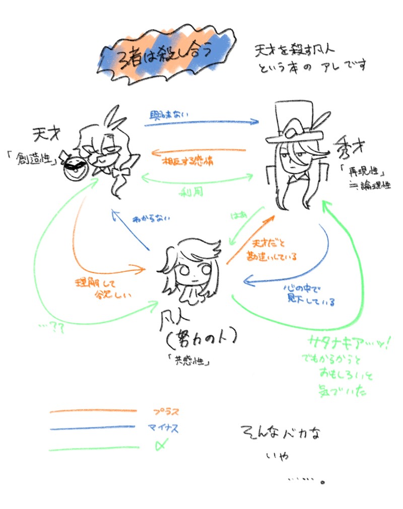 iceyamamori☆quiet followDOODLE「天才を殺す凡人」という本の中に出てくる、天才秀才凡才の関係図が白百合っぽい気がしたけど、そうでもなかった図です。カルコスは秀才寄りかなと思います Tap to full screen (size:1668x2110).Repost is prohibited Let's send reactions! freqpopularsnackothersPayment processing Replies from the creator Follow creator you care about!☆quiet follow iceyamamoriSPOILERきんでもRの各種バドエン感想です iceyamamoriDOODLE耳の穴あけの個人的な感想です。人間は架空の人間です。 iceyamamoriDOODLE耳の日記です。人間は架空の人間です。 2 iceyamamoriDOODLEマネロ してるだけ 2 iceyamamoriDOODLEインスクリプション楽しかった iceyamamoriSPOILER落葉 バレ 4