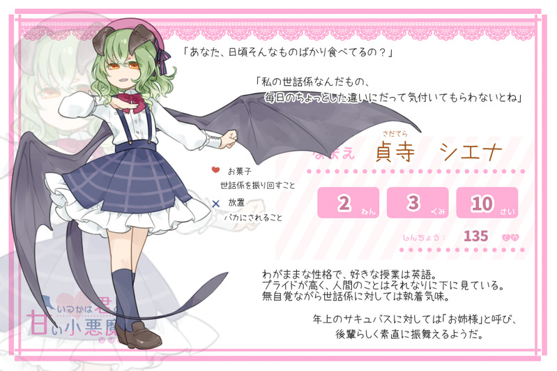 Mottomori15☆quiet followDONE一次創作診断「いつかは君の甘い小悪魔」様の世界観にお邪魔した子です。※企画ではありません貞寺(さだてら)シエナ2年3組/10歳/135cm show all(+1 images) Tap to full screen (size:1000x666).Repost is prohibited Let's send reactions! freqpopularsnackothersPayment processing Replies from the creator Follow creator you care about!☆quiet follow Mottomori15DONE一次創作診断「いつかは君の甘い小悪魔」様の世界観にお邪魔した子です。※企画ではありません貞寺(さだてら)シエナ2年3組/10歳/135cm 2 Mottomori15DONETwitter創作企画「Witch & Devil’s Heart」様へ参加させていただきます。兎の魔女のCS+軽い補足。 2 Mottomori15DONETwitter創作企画「ラプシの庭」様に参加させていただきます。「胡散臭くてえっちなおねえさん」をテーマにしたタニアですが、思わせぶりな言動はあっても性に奔放なわけではありません。全年齢でもR-18(G)でもお騒がせキャラとして気軽にお使いください。ただ、魔法を使用する際のシチュエーションは常識の範囲内でお願いいたします。 3 recommended works DONDONDONKIDOODLEぎあちょ夢一度ラフ描いて没にしたけど描いたので載せる。解釈違い死んでるので我慢できなかったら消す。ボツ理由とかも一緒に載せました🤨よくよく見たら腕おかしいけどゆるして‥パス 成人か yes or no clarithromycinDOODLE やんげんDOODLE망상 500들어간 황궁물 아키토우.. 7 井倉めじかDOODLE【子供化】エケ(クリアル) むさしのDOODLE tatuwa_4DOODLE昨日描いたので「明日」の部分は「今日」ということで。本年もありがとうございました! chico_star6DOODLEいつか描きたいやつ 2 chico_star6DONE愛と炎 2 osame_jrDOODLEクリスマスのお話です。クリスマスの夜に降ってきましたが、普通に間に合いませんでしたね。 2403