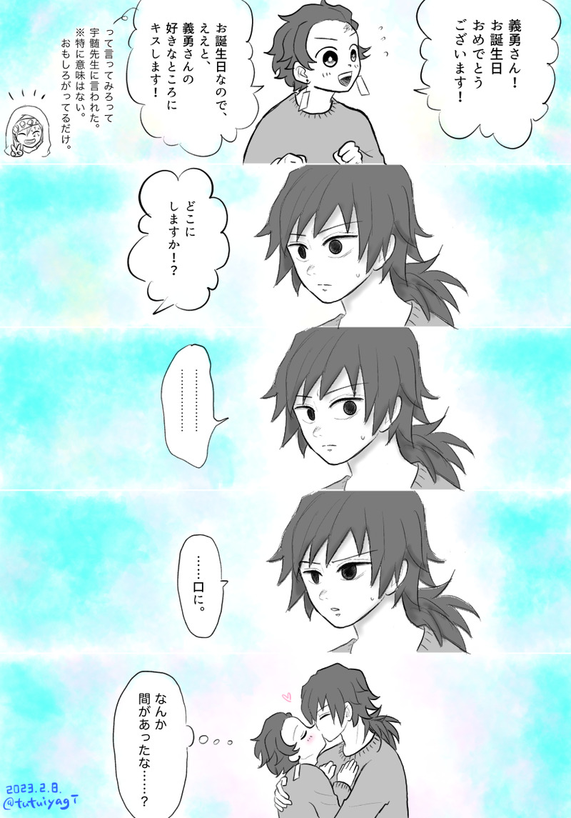 2023義誕に寄せて漫画(1枚目)を描いたらリプで「本当はどこって言おうとしたんだろうね」っていう話で盛り上がったので、追加で3つ描きました。